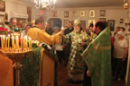 К Литургии прибыли также протоиерей Виктор Болдевскуль (Богоявленский храм, Бостон) и протоиерей Михаил Краули, (храм блаж. Ксении, г. Метуен, Массачусэттс). Как говорится: в тесноте, да не в обиде: в маленьком Алтаре было трудно передвигаться, но в духе братской любви спокойно и молитвенно прошло богослужение.