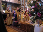 На следующее утро, совершив ранюю Божественную литургию в приделе Радосте-Скорбященского кафедрального собора, освященном в честь святого праведного Иоанна Кронштатдтского, Его Преосвященство направился в Серафимовскую церковь в Монтерее, где настоятельствует протоиерей Георгий Куртов, радостно представившего владыку Иону своим прихожанам по окончании Литургии.