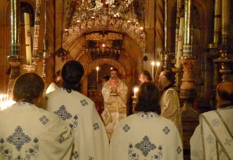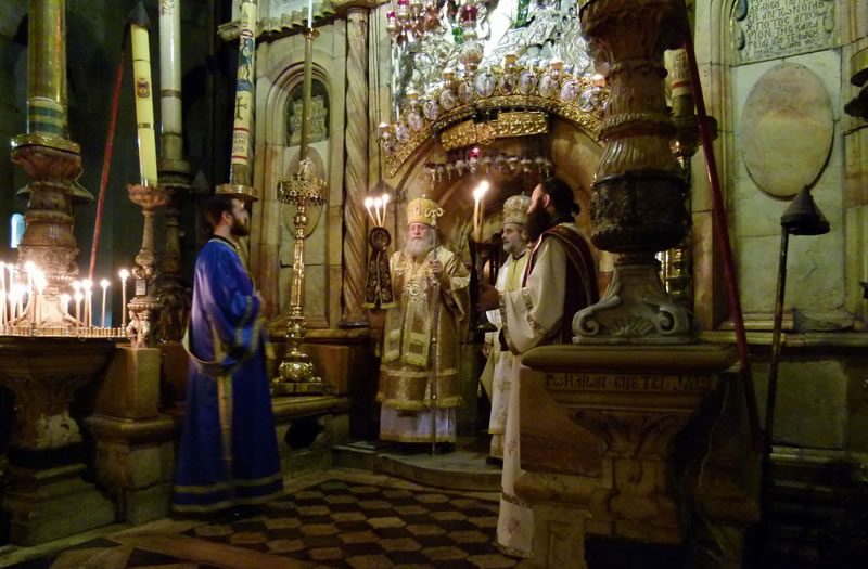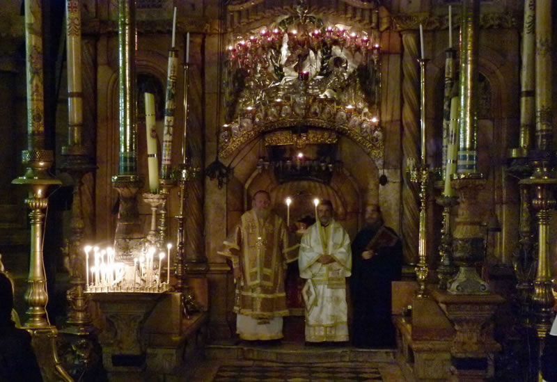 В ночь с 4 на 5 октября Высокопреосвященнейший митрополит Восточно-Американский и Нью-Йоркский Иларион, Первоиерарх Русской Зарубежной Церкви, совершающий паломничество по святым местам Иерусалима и Палестины, совершил Божественную литургию на Живоносном Гробе Господнем. Его Высокопреосвященству сослужили иерарх Иерусалимского Патриархата архиепископ Герасский Феофан, Начальник Духовной Миссии Русской Зарубежной Церкви в Иерусалиме архимандрит Роман (Красовский), клирик Австралийско-Новозеландской епархии протоиерей Гавриил Макаров, паломники в священном сане.