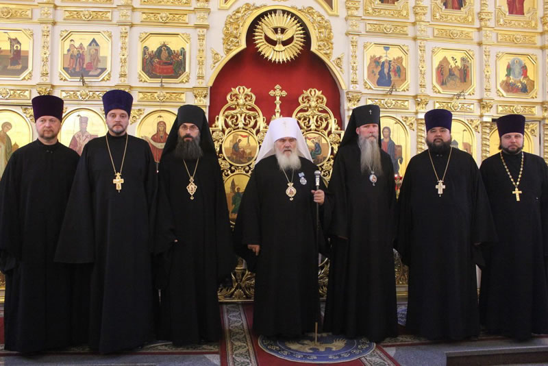 Его Высокопреосвященству сослужили: архиепископ Сан-Францисский и Западно-Американский (Русской Зарубежной Церкви) Кирилл и епископ Уссурийский Иннокентий, викарий Владивостокской епархии.