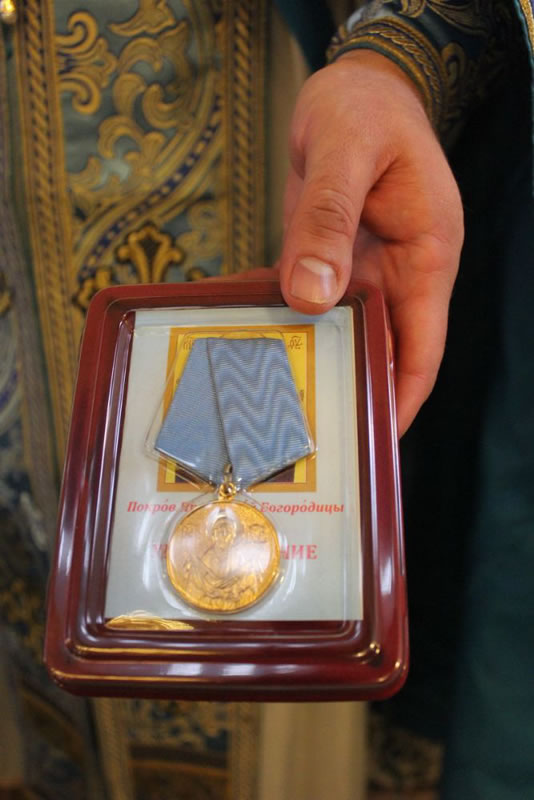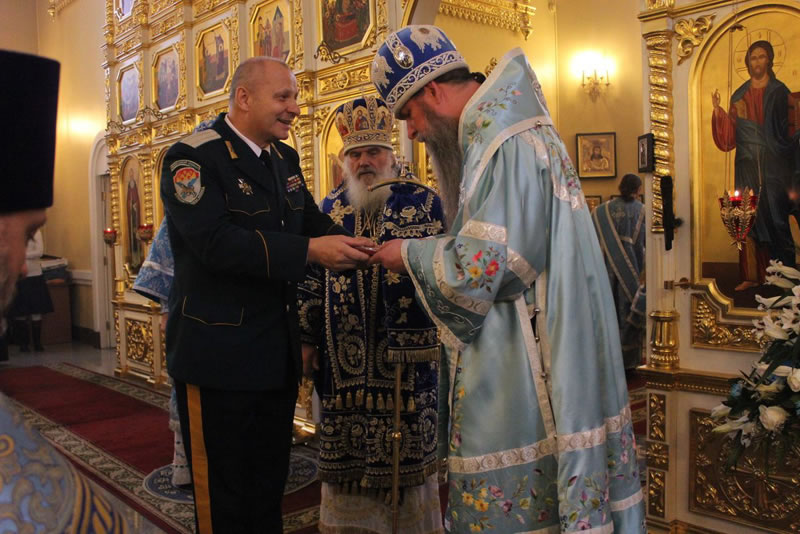 Атаман Уссурийского казачьего войска казачий полковник Мельников Олег Анатольевич наградил архиепископа Сан-Францисского и Западно-Американского Кирилла медалью Покрова Пресвятой Богородицы.