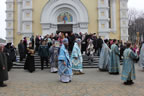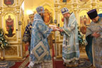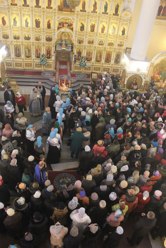 После Божественной литургии в Покровском соборе до самого вечера, до закрытия собора, служили молебны Божией Матери.