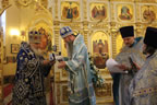 Гости из Русской Православной зарубежной Церкви спели тропарь Божией Матери на распев, принятый в Русской Зарубежной Церкви.