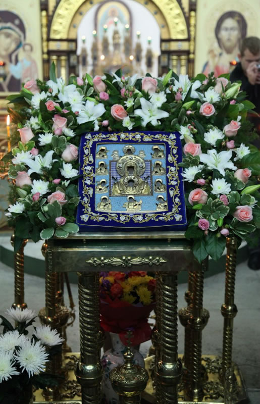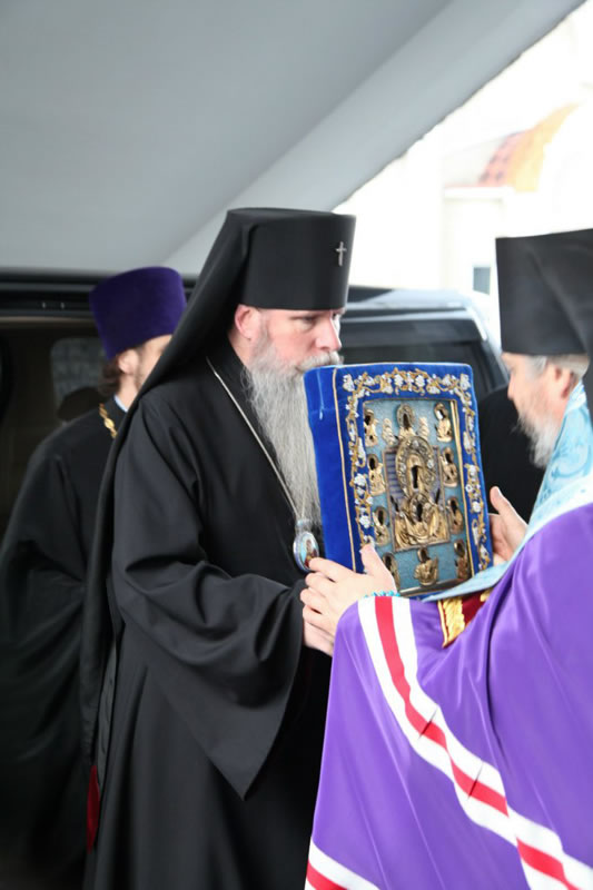 Перед чудотворным образом Божией Матери был совершен молебен, который возглавили архиепископ Сан-Францисский и Западно-Американский Русской Зарубежной Церкви Кирилл; и епископ Находкинский и Преображенский Николай.