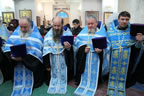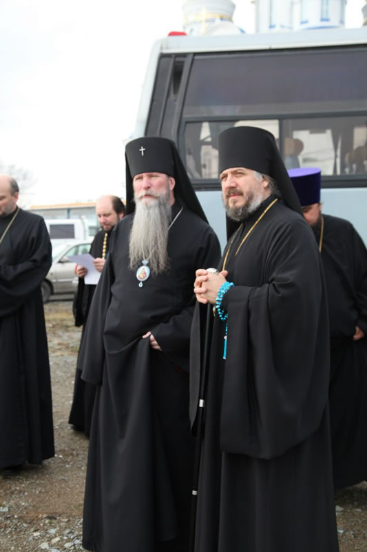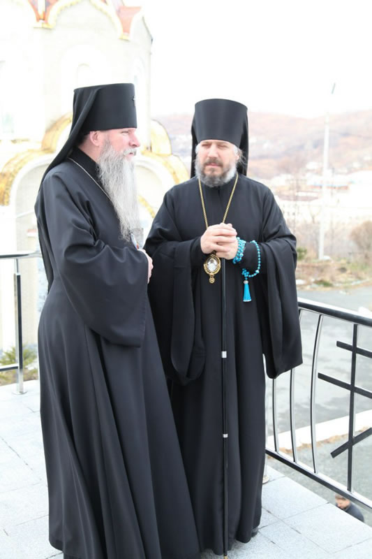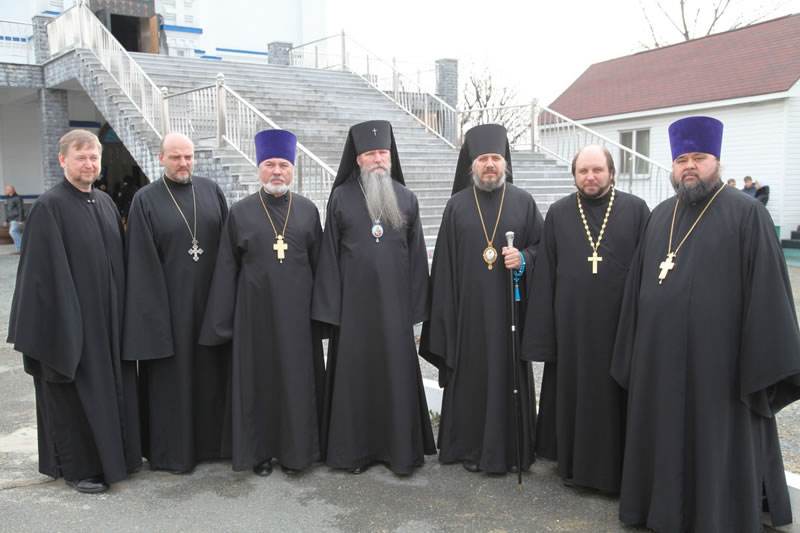 Архиереям сослужил собор духовенства Находкинской епархии. За богослужением молились священнослужители Русской Зарубежной Церкви – участники делегации, доставившей древнюю святыню в Приморье: благочинный Русской Зарубежной Церкви в Новой Зеландии протоиерей Владимир Бойков; секретарь Первоиерарха Русской Зарубежной Церкви протоиерей Серафим Ган; хранитель Курской-Коренной иконы священник Николай Ольховский; клирик Петропавловского собора г. Сидней в Австралии протодиакон Александр Котляров.