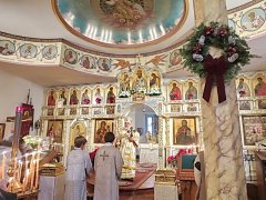 Во вторник, 7 января, в великий двунадесятый праздник Рождества Христова Божественную литургию в Знаменском синодальном соборе возглавил архиепископ Монреальский и Канадский Гавриил. Его Высокопреосвященству сослужили ключарь собора протоиерей Андрей Соммер, хранитель Курско-Коренной иконы Божией Матери иерей Николай Ольховский, иеромонах Евтихий (Довганюк) при протодиаконе Николае Мохове, диаконах Нафане Мусселли, Назарии Фаталиеве и Дионисии Львове. Праздничные рождественские богослужения в соборе прошли в присутствии Путеводительницы Русского рассеяния - чудотворной Курско-Коренной иконы Божией Матери. За Божественной литургией пел синодальный хор под управлением Петра Алексеевича Фекулы. По окончании литургии духовенство и прихожане прошли в церковный зал, где стараниями соборного сестричества была устроена обильная трапеза.