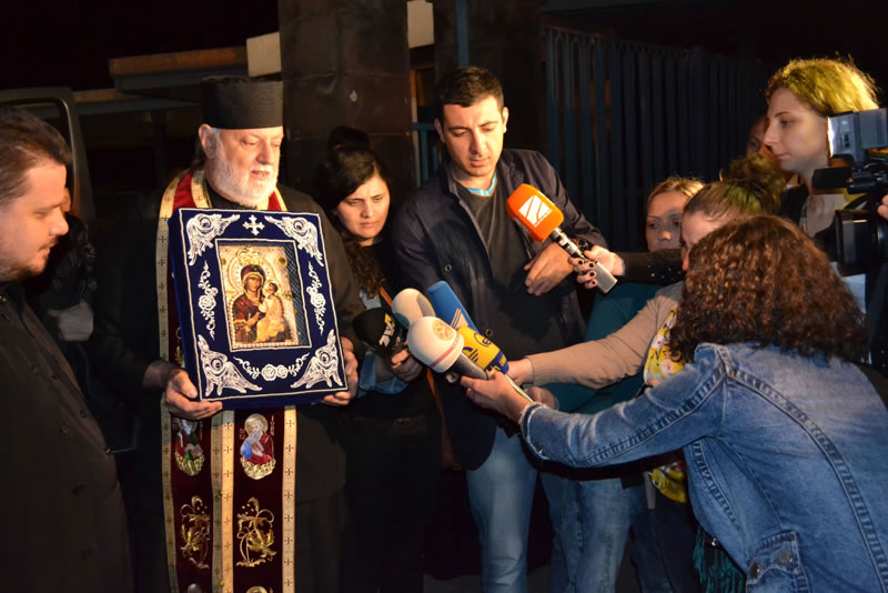 Приложившись к чудотворному образу, Его Святейшество и Блаженство преподал свое Первосвятительское благословение протоиерею Иоанну Сорочке и протоиерею Владимиру Дерюгину, хранителю иконы Нектарию Янгсону, а также и их спутникам, пожелав им благополучной поездки и помощи Божией. Ожидается, что святыня посетит многочисленные приходы и монастыри Грузинской Православной Церкви, где будет предоставлена возможность верующему народу помолиться перед иконой.