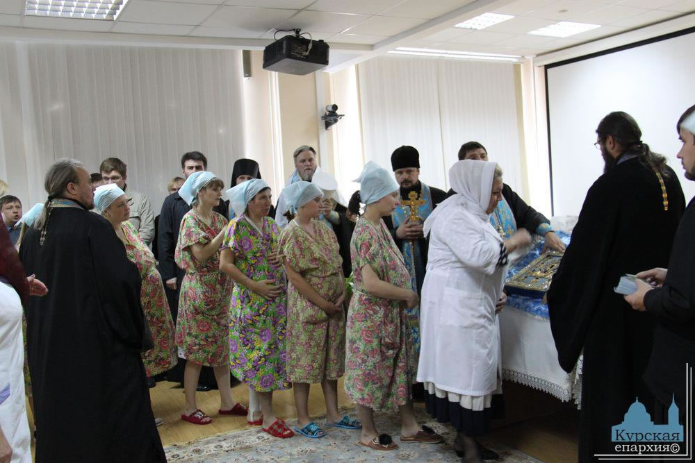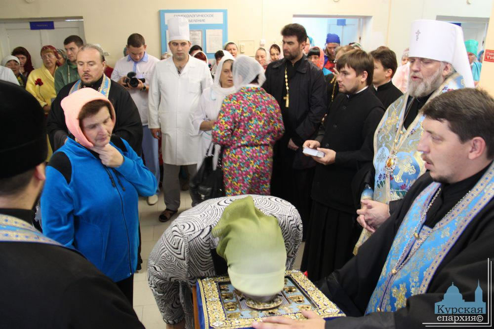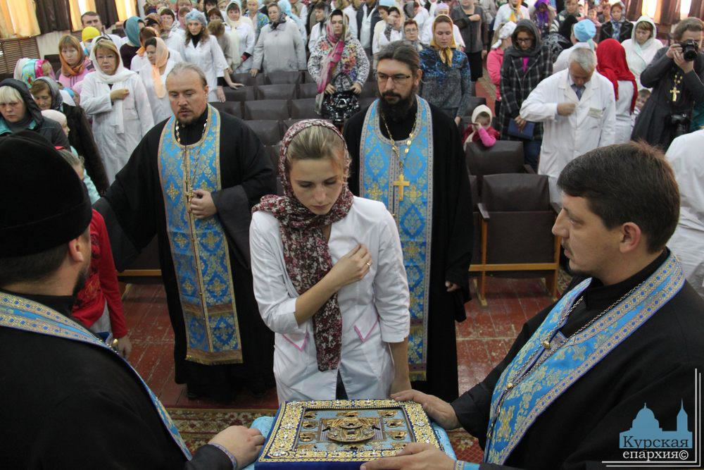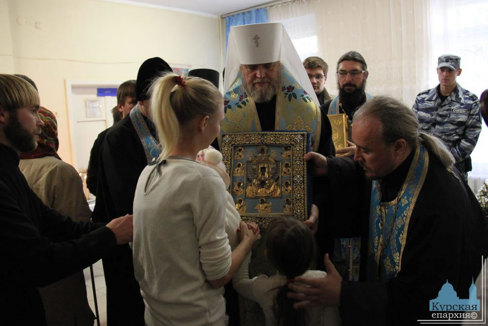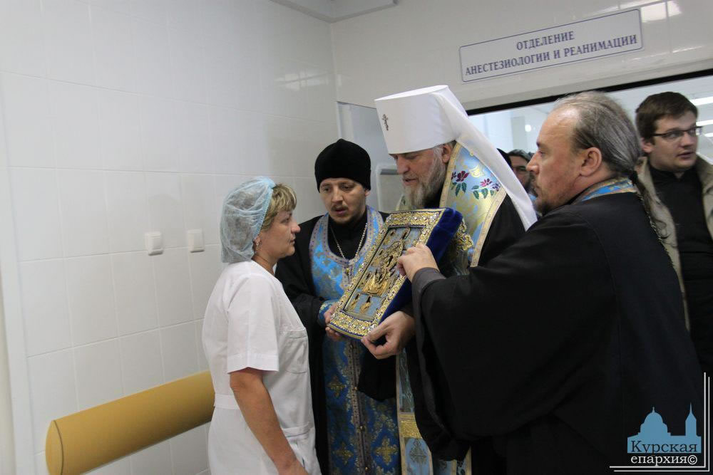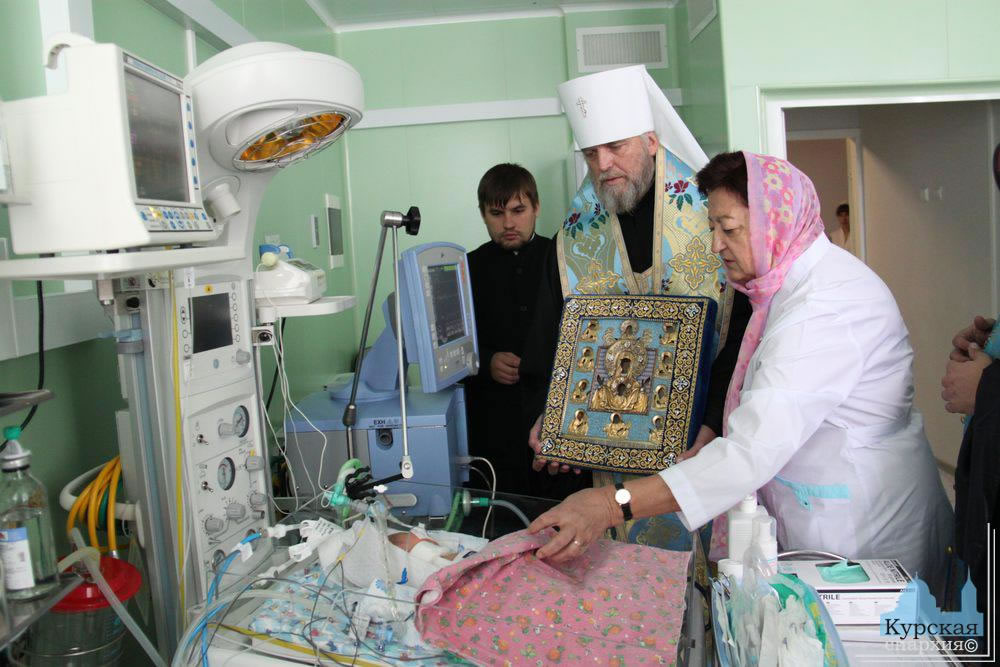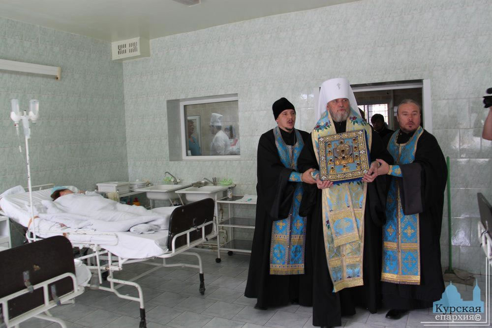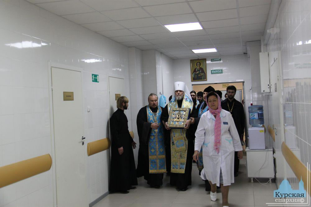 Стало уже доброй традицией в дни, когда в Курске находится чудотворный образ Божией Матери, приносить святыню в лечебные заведения. К сожалению, не все могут прийти к иконе или привести своих детей из-за болезни, но они так нуждаются в духовной и молитвенной поддержке. Поэтому чудотворную икону Божией Матери приносят в больницы, подавая медицинскому персоналу и их пациентам веру, надежду и утешение.