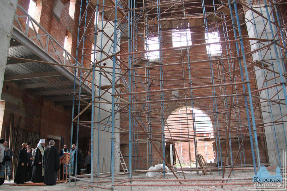 По дороге в перинатальный центр глава митрополии посетил строящийся Преображенский храм, где помолился о скорейшем завершении строительства и благословил строителей.