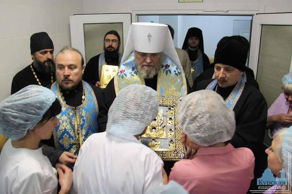 1 октября митрополит Курский и Рыльский Герман с чудотворной иконой Божией Матери «Знамение» Курской-Коренной, пребывающий в эти дни на курской земле, посетил Областную детскую клиническую больницу, онкологический диспансер и новый онкологический центр, а также перинатальный центр.