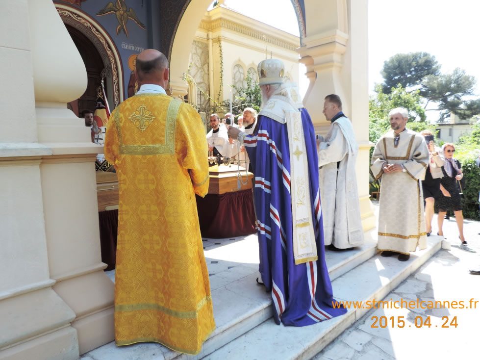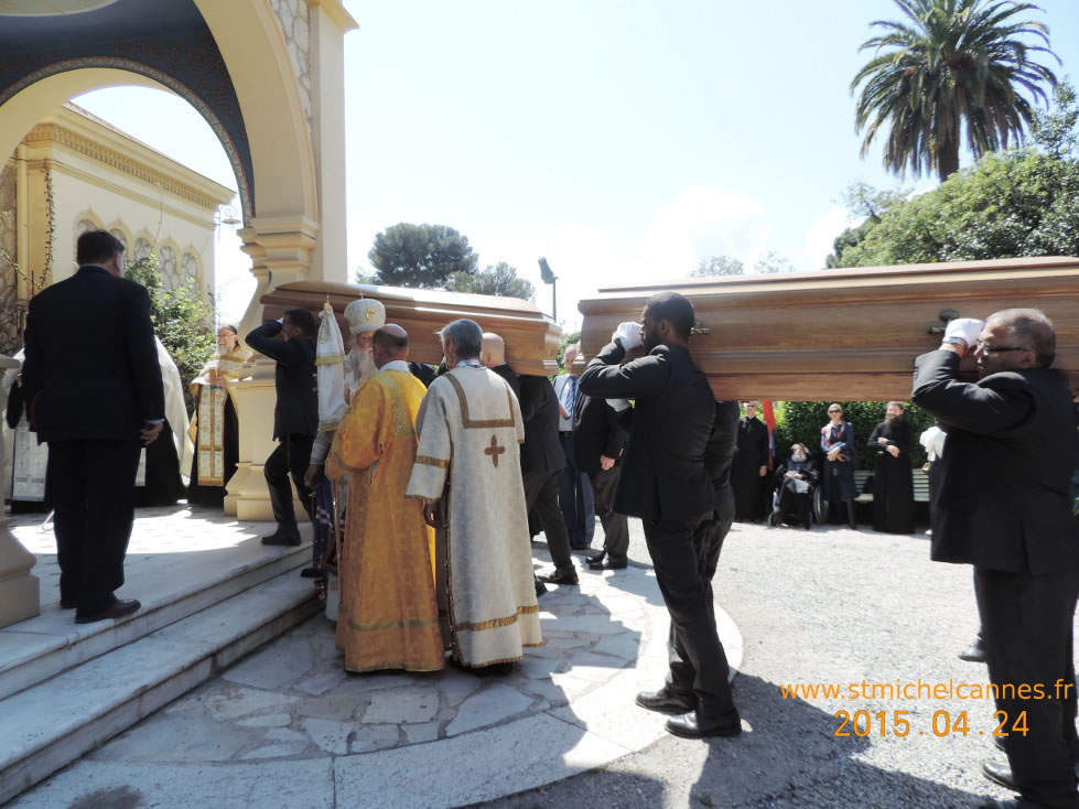 В пятницу, 24 апреля, на территории Архангело-Михайловской церкви в Каннах была совершена панихида у гробов великого князя Николая Николаевича и его супруги великой княгини Анастасии по случаю перенесения их останков из усыпальницы храма в Россию. Богослужение возглавил архиепископ Женевский и Западно-Европейский Михаил в сослужении духовенства Русской Зарубежной и других Церквей, также присутствовали посол РФ во Франции А.К.Орлов, внук великого князя Петра Николаевича и великой княгини Милицы Николаевны Дмитрий Романов с внуком из США, другие почетные лица, прихожане православных храмов Лазурного берега.