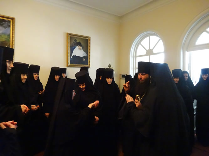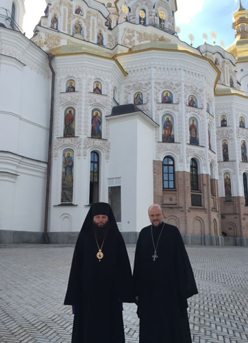 В субботу, 23 мая, Преосвященный епископ Николай и сопровождавший его протоиерей Серафим Ган посетили Успенскую Киево-Печерскую Лавру, где приняли участие в служении Всенощного бдения. На следующее утро, в праздник равноапостольных Мефодия и Кирилла, первоучителей Словенских, Его Преосвященство возглавил служение Божественной литургии в Покровском женском монастыре столицы Украины. Здесь Его Преосвященство поклонился мощам преподобной Анастасии Киевской (Александры Петровны Романовой) и преподобноисповедницы Софии (Гриневой). За трапезой Его Преосвященство пожелал сестрам преуспеяния в духовной жизни и выразил радость состоявшимся служением Божественной литургии в таком святом и благодатном месте. В тот же день Преосвященный Николай посетил Софийский собор, памятник равноапостольному Владимиру и другие святыни Киева. На следующий день Преосвященнейший владыка Николай имел возможность побеседовать с Блаженнейшим митрополитом Онуфрием в его резиденции в Феофании.