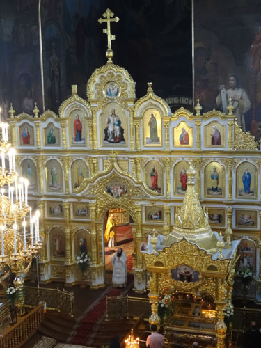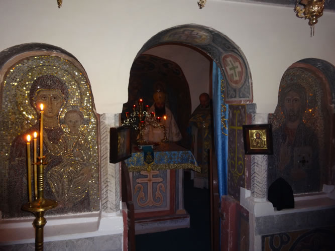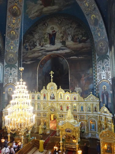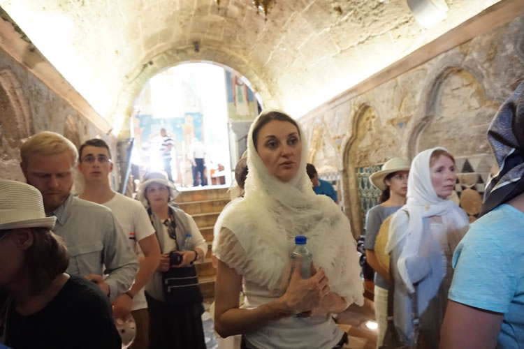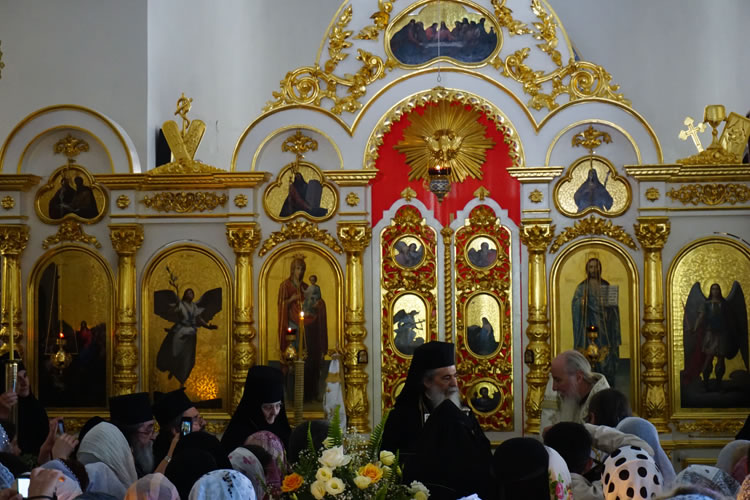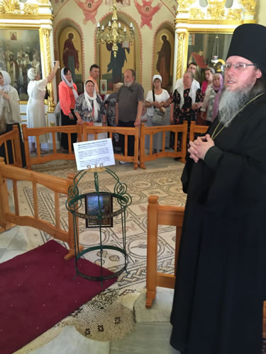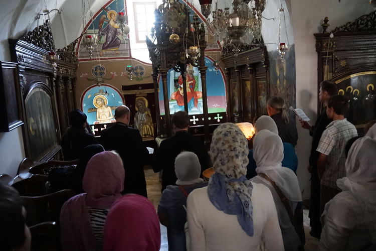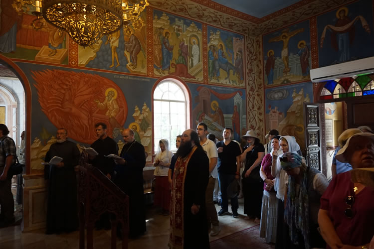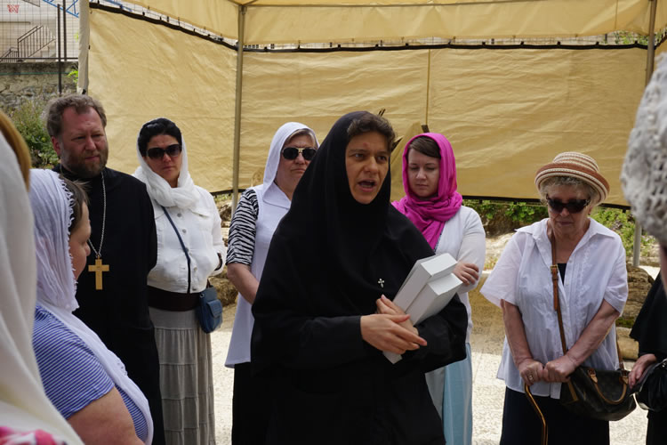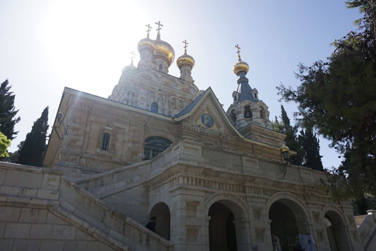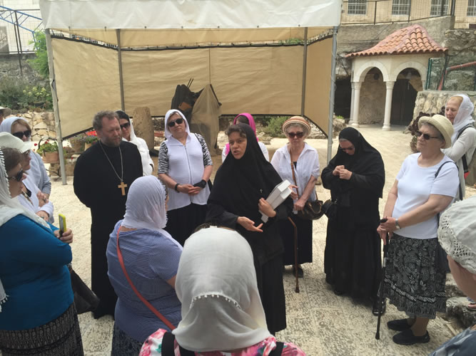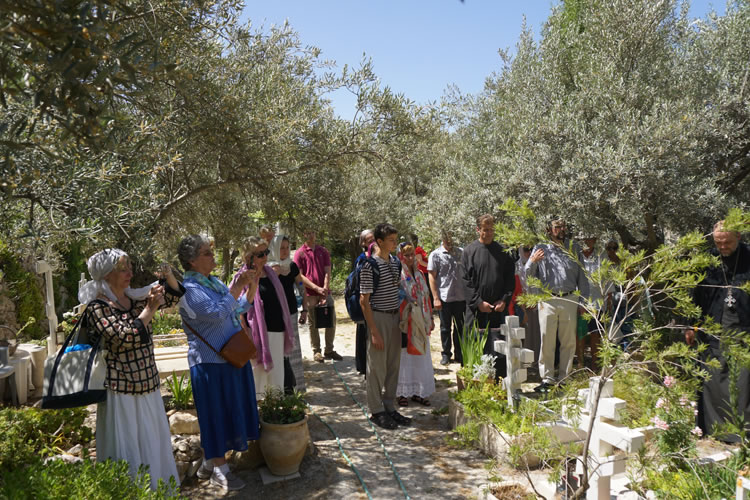 В среду, 20 мая, в Отдание Пасхи, Преосвященный Николай и паломники приняли участие в Божественной литургии в русском женском монастыре равноапостольной Марии Магдалины в Гефсимании. Соборный храм обители может служить образцом русской архитектуры московского стиля. Его семь куполов все луковичной формы, с высокими барабанами; весь храм производит впечатление легкости и изящества. Иконостас – белый, мраморный с бронзой. Пол – из дорогого, разноцветного мрамора. Иконы написаны академиком Верещагиным. Над царскими вратами – огромная фреска, изображающая равноапостольную Марию Магдалину перед судящим ее императором. Здесь Божественную литургию возглавил архиепископ Берлинский и Германский Марк, прибывший на Святую Землю с большой группой паломников из Берлинско-Германской и Великобританской епархий Русской Зарубежной Церкви. Ему сослужили, помимо епископа Николая и его спутников в священном сане, архимандрит Роман (Красовский), Начальник Духовной Миссии Русской Зарубежной Церкви в Иерусалиме, клирики Миссии и другие паломники. Ликующе пел Пасхальные песнопения монастырский хор. Тепло принимала паломническую группу игуменья Елизавета (Шмельц), после торжественного богослужения предложившая вкусную трапезу. Приложившись здесь к мощам преподобномучениц великой княгини Елизаветы Феодоровны и инокини Варвары и совершив заупокойную литию с поминовением вышеупомянутого митрополита Анастасия и почивших сестер обители, паломники направились на колодец Иакова, где произошла известная беседа Спасителя с самарянкой, а затем – в Спасо-Вознесенский женский монастырь на Елеоне, дабы помолиться там за Всенощным бдением под праздник Вознесения Господня.