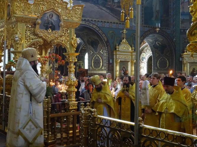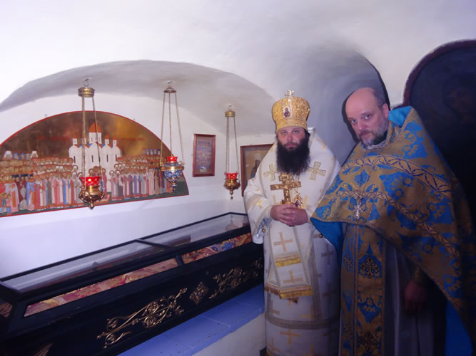 Во вторник, 26 мая, Преосвященный Николай совершил Божественную литургию в Благовещенской церкви Дальних пещер Киево-Печерской Лавры, где почивают мощами своими святители Тобольский Павел и Киевский Владимир, первый священномученик из архипастырей Русской Церкви, пострадавший в годы безбожных гонений.