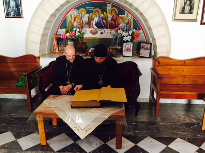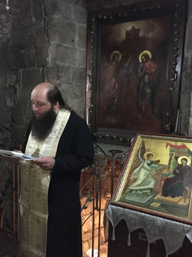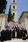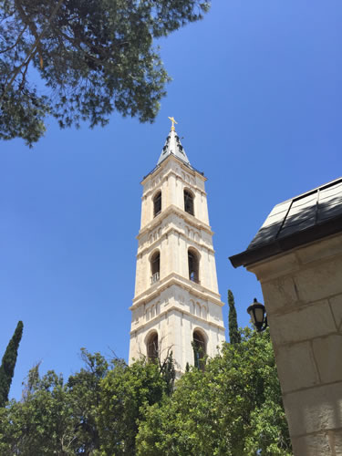 Приближаясь к Иерусалиму, с какой бы стороны мы не приближались, всегда была видна на фоне светлого, безоблачного неба Иордании, на вершине Елеонской горы, высокая, стройная, белая колокольня, заканчивающася острым шпилем с крестом. Это колокольня Спасо-Вознесенской женской обители на Елеоне и она прозвана местными – «Русской свечей». Спасо-Вознесенский соборный храм обители – византийского типа, приземистый с низким куполом. В церкви погребен приснопамятный архимандрит Антонин (Капустин), самый великий из Начальников Русской Духовной Миссии. Здесь Преосвященный епископ Николай и сопровождавшие его паломники отметили великий праздник Вознесения Господня, пользуясь добрым хлебосольством игуменьи Моисеи с сестрами. Божественную литургию в этот праздничный день возглавил архиепископ Берлинский и Германский Марк. К запричастному стиху в храм прибыл Блаженнейший Патриарх Феофил III, только что совершивший богослужение на «Стопочке» и радостно приветствовавший собравшихся богомольцев. После праздничного обеда в трапезном храме святого Филарета Милостивого игуменья Моисея приняла в своих покоях архипастырей, духовенство и всех паломников, сопровождавших архиепископа Марка и епископа Николая. За чаепитием была проведена душеполезная беседа об истории и настоящем дне Спасо-Вознесенской обители. Архимандрит Роман (Красовский) тепло приветствовал паломников и просил их не забывать в своих молитвах подвизающихся на Святой Земле и делиться с другими хотя-бы одной крупицей того благодатного чувства, которое наполняет паломника, побывавшего на Святой Земле.