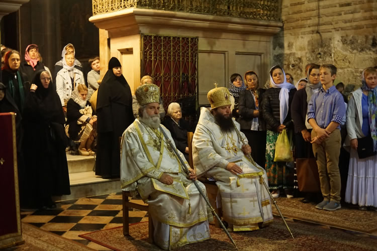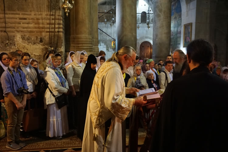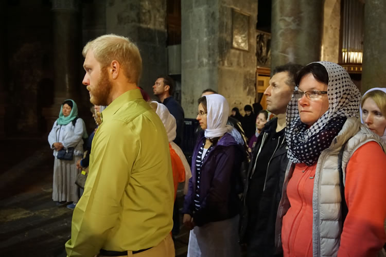 Паломники, сопровождавшие Его Преосвященство, были в Храме Живоносного Гроба Господня несколько раз и каждый раз чувствовался ими, как охватывал их глубокий трепет, так что как-то не было сил смотреть по сторонам и замечать детали – все чувства и мысли были сосредоточены в себе, на своей сердечной мольбе к Богу о Церкви, мире, людях, о благословении на жизнь и собственном исправлении. Казалось, что от Живоносного Гроба и Голгофы исходили невероятная духовная сила и милость Божия, обновляющая и укрепляющая дух. Еще епископ Манхеттенский Лавр, будущий Первоиерарх Русской Зарубежной Церкви, душа и инициатор многочисленных паломничеств из Нью-Йорка на Святую Землю говорил, что здесь ощущается присутствие огромной духовной силы, которая влечет и охватывает паломника, меняет его жизнь.