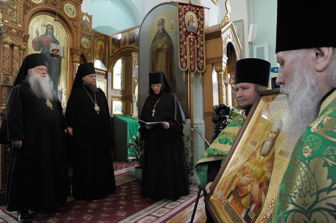 Торжества начались в Иоанновском ставропигиальном женском монастыре, который был основан в 1900 году святым праведным Иоанном Кронштадтским и где ныне покоятся его мощи. Соборный молебен возглавил митрополит Барнаульский и Алтайский Сергий. Ему сослужили старший священник Иоанновского монастыря протоиерей Николай Беляев и гости юбилейных торжеств - настоятели храмов во имя святого Иоанна Кронштадтского, расположенных за границей.