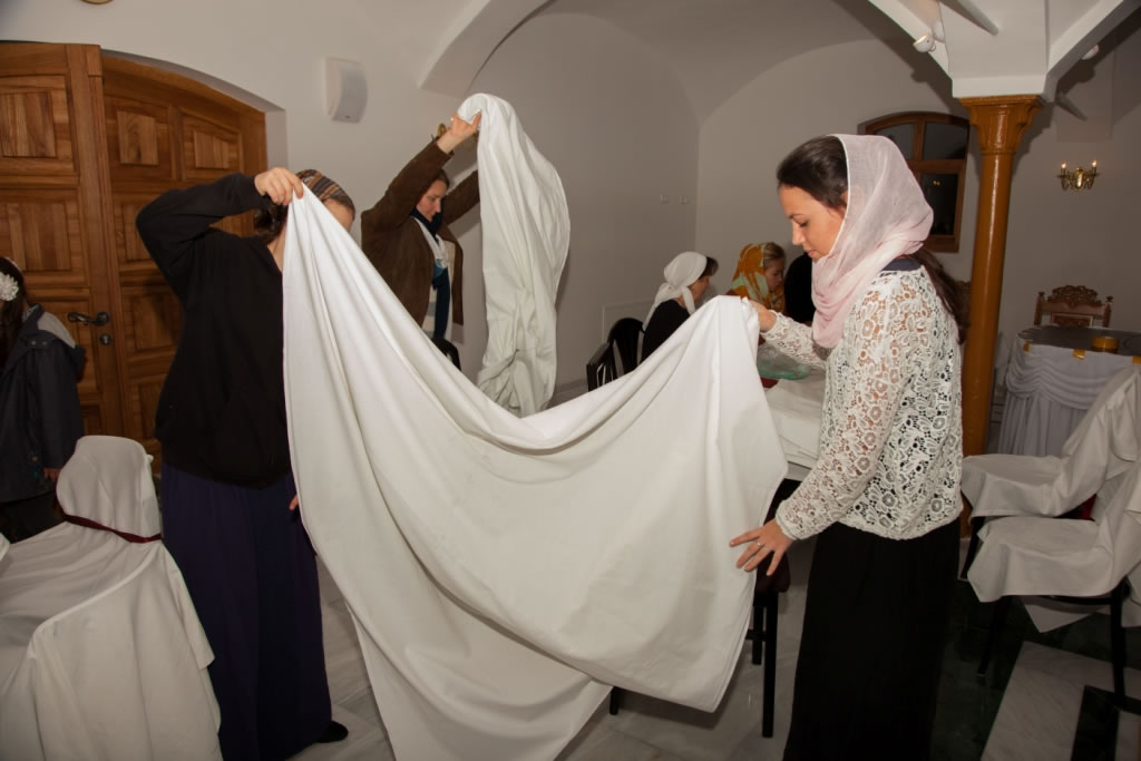 По завершении Божественной литургии архиереи, духовенство и многочисленные гости были приглашены на праздничную трапезу в новый зал, строительство которого было завершено накануне праздника. Перед началом трапезы владыка Агапит совершил чин освящения зала. Духовенству и гостям была предложена обильная трапеза, заботливо приготовленная сестрами и паломницами обители. На улице рядом с залом были установлены палатки и размещены трапезные столы со скамейками, в которых все желающие могли пообедать.