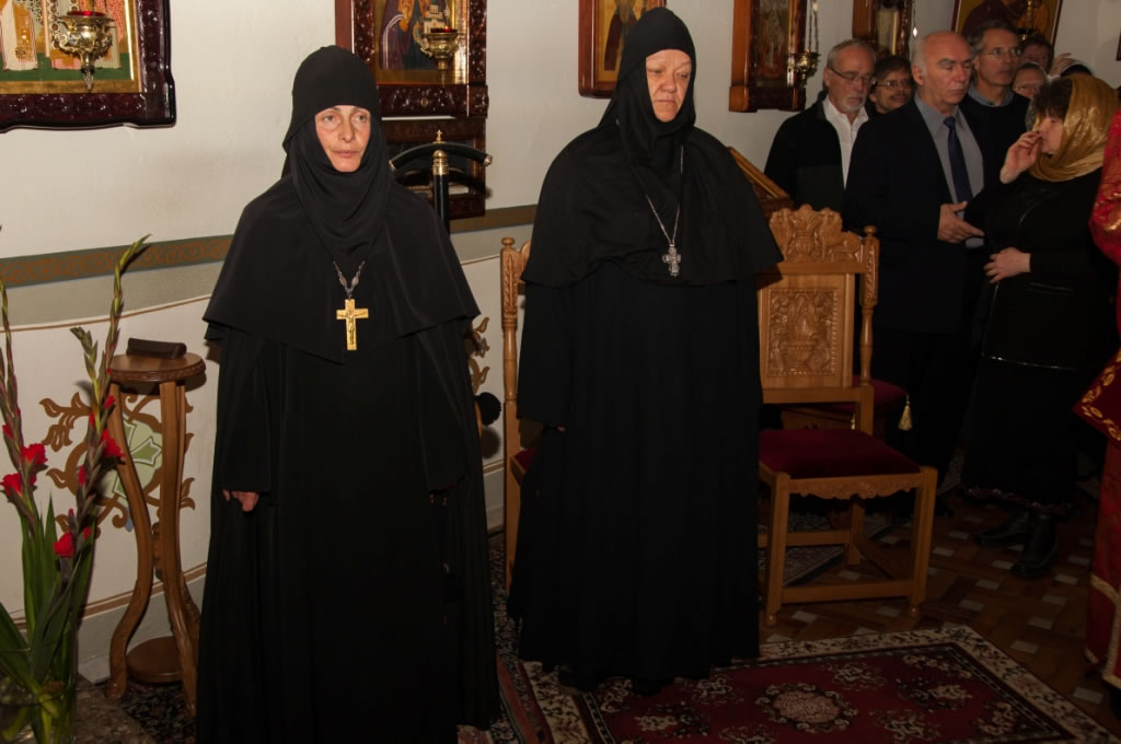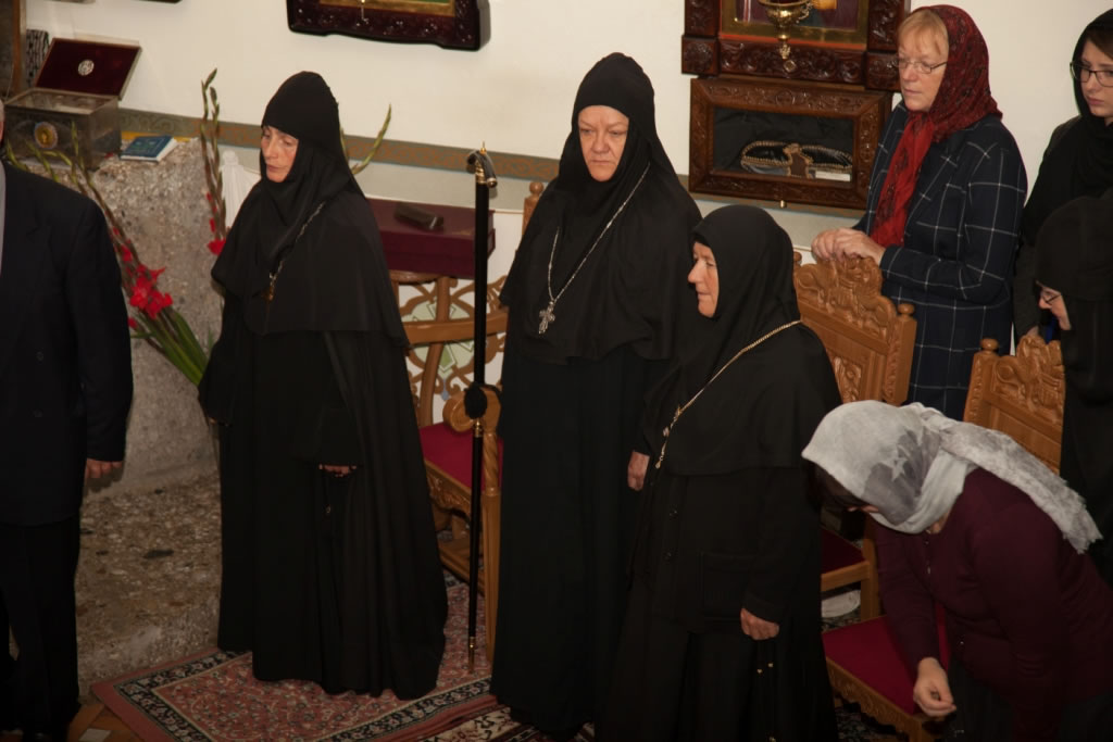 Вместе с настоятельницей обители игуменией Марией, за Литургией молились также игумения Елизавета, настоятельница женского монастыря равноапостольной Марии Магдалины в Гефсимании и игумения Фекла, настоятельница женского монастыря Прерадовац (Сербская Православная Церковь).