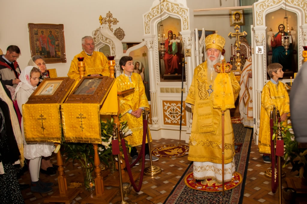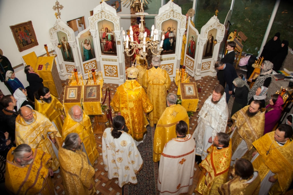 И вот наступил долгожданный праздник. День этот начался с Божественной литургии, которую возглавил Высокопреосвященнейший Марк, архиепископ Берлинский и Германский. Его Высокопреосвященству сослужили епископ Штутгартский Агапит, викарий Германской епархии; игумен Гавриил настоятель мужского монастыря «Крупа» в Далматии (Сербская Православная Церковь) ; иеромонах Авраамий (Диркс), клирик обители; протоиерей Сергий Маношкин, протоиерей Илья Лимбергер, протоиерей Николай Забелич; протоиерей Виктор Вдовиченко, иерей Андрей Сикоев, иерей Валерий Михеев, иерей Андрей Березовский, иерей Анатолий Шефер и иерей Виктор Мешко, при протодиаконе Георгии Кобро и иеродиакон Корнилии (Литвиченко).