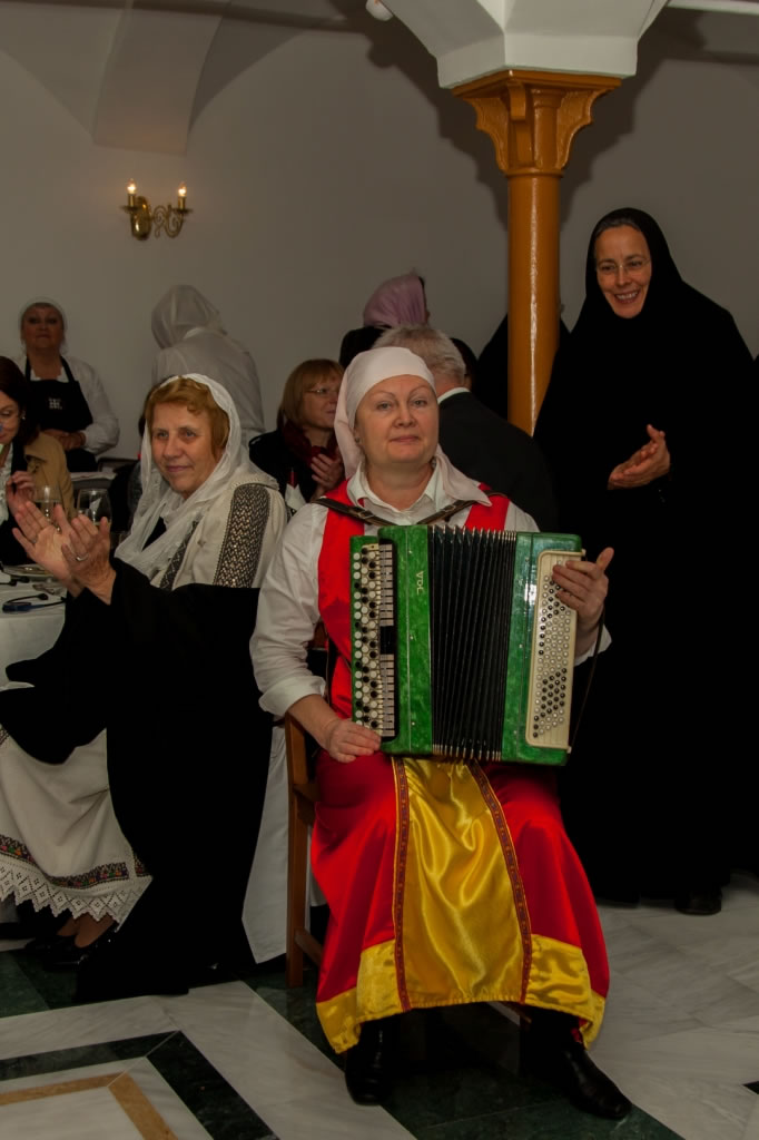 Продолжением празднования стал замечательный детский концерт с выступлением участниц детского летнего православного лагеря, вот уже 10 лет действующего на территории обители. Веселые звуки гармони, в руках профессионального музыканта Любови, прихожанки прихода в Амберге, сопровождали звонкие голоса юных отроковиц, которые специально приехали на праздник любимой обители. Хорошо знакомые и дорогие для нас русские народные песни в сочетании хороводов в ярких русских народных костюмах произвели сильное впечатление на всех присутствовавших гостей.