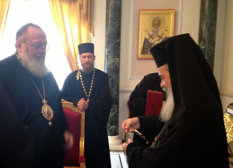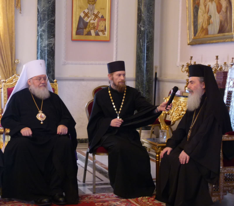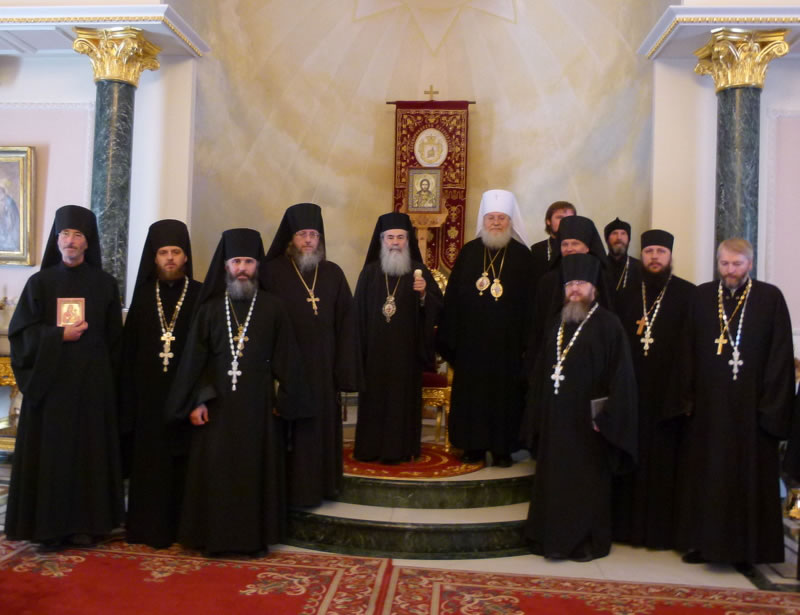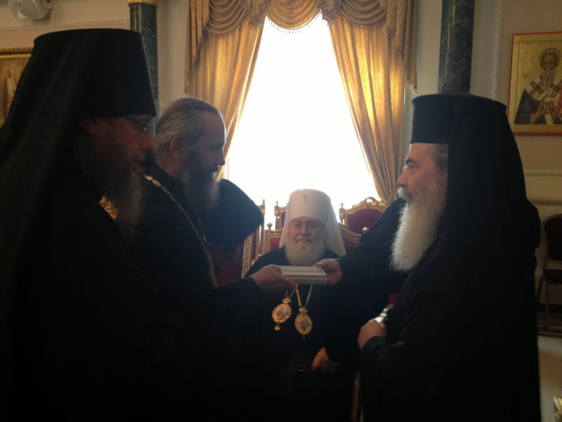 В четверг, 12 ноября, Высокопреосвященнейший митрополит Восточно-Американский и Нью-Йоркский Иларион, Первоиерарх Русской Зарубежной Церкви, находящийся с паломническим визитом на Святой Земле, посетил Иерусалимскую Патриархию, где был принят Блаженнейшим Патриархом Святого Града Иерусалима и всея Палестины Феофилом III. Его Высокопреосвященство сопровождал архимандрит Роман (Красовский) и духовенство Миссии Русской Зарубежной Церкви на Святой Земле. После встречи с Блаженнейшим Патриархом Феофилом, прошедшей в духе братской любви и взаимопонимания, Его Высокопреосвященство проследовал в Храм Живоносного Гроба Господня, где поклонился его святыням и вознес горячую молитву о епископате, клире и пастве Русской Зарубежной Церкви.