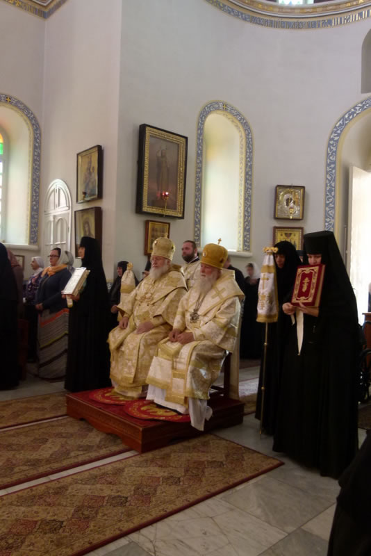 В воскресенье, 15 ноября, митрополит Восточно-Американский и Нью-Йоркский Иларион, Первоиерарх Русской Зарубежной Церкви, совершил Божественную литургию, а накануне - Всенощное бдение, в Спасо-Вознесенской женской обители на Елеоне. Его Высокопреосвященству сослужили архиепископ Женевский и Западно-Европейский Михаил, архимандрит Роман (Красовский), духовенство Духовной Миссии Русской Зарубежной Церкви в Иерусалиме и паломники в священном сане. За богослужениями молились игуменья Моисея, настоятельница обители, сестры и паломники.