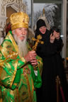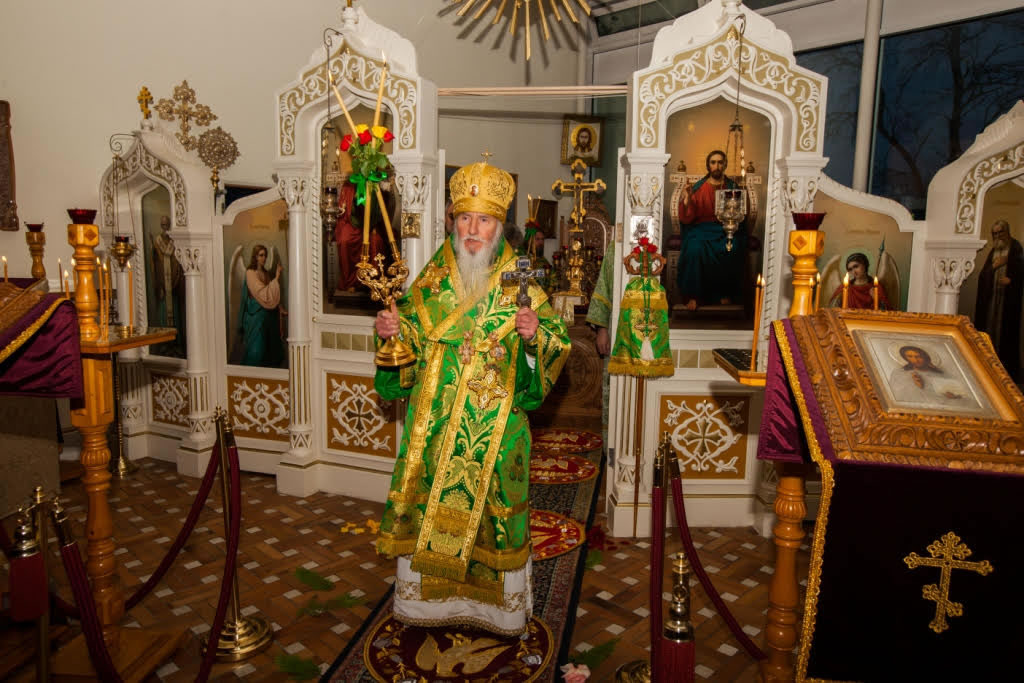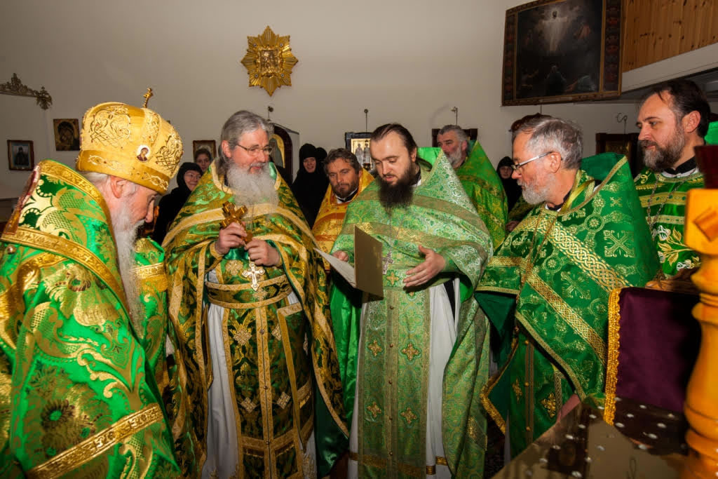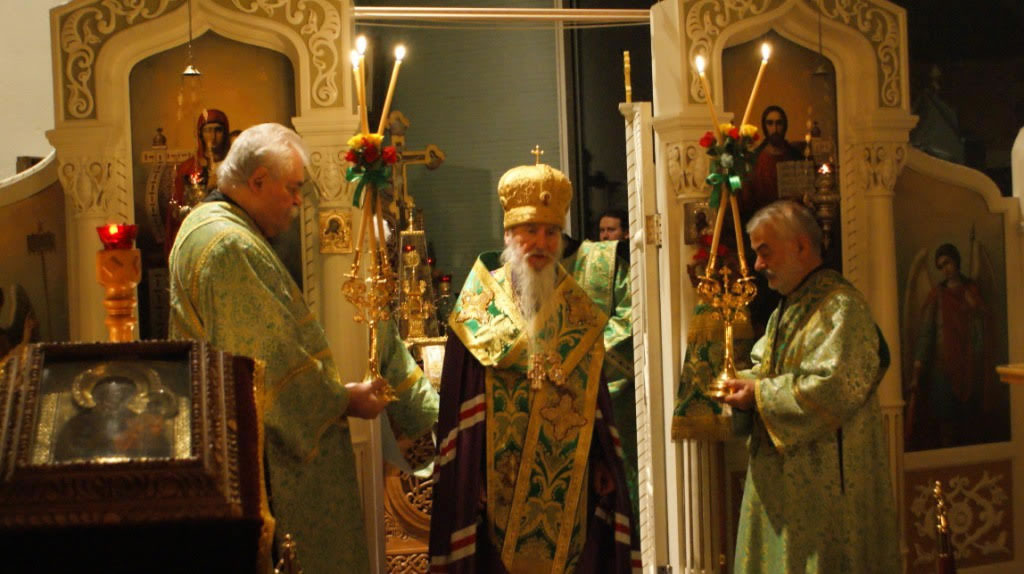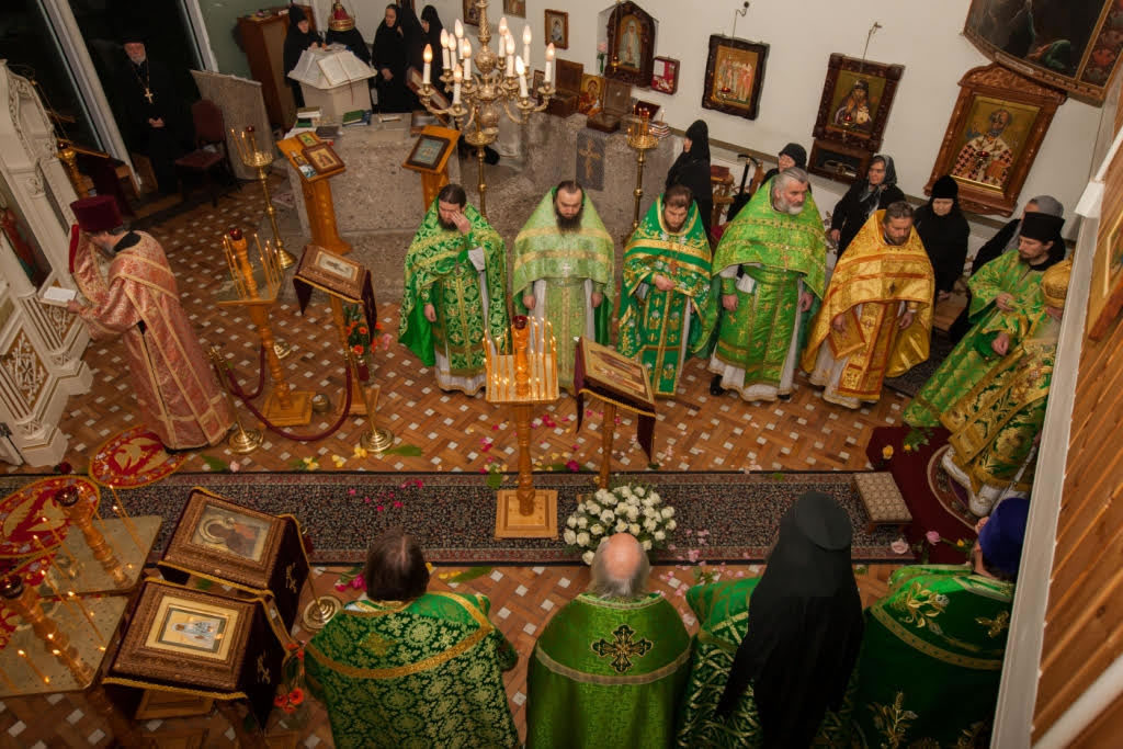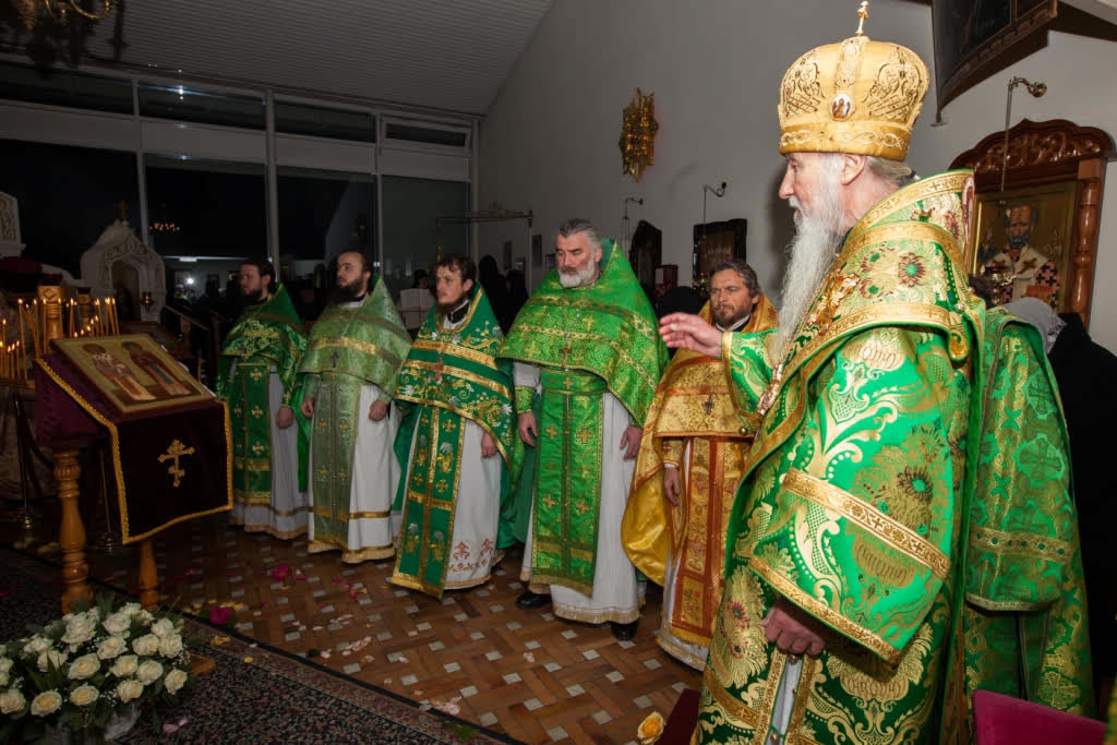 Под тихое пение сестер, в сопровождении игумении монастыря монахини Марии и предшествующей свещеносицы, Владыко медлено шел ко входу в Храм. Дорожка длинного коридора, по которой шел Владыко, была заботливо украшена руками сестер горящими свечами и устлана цветами. 14 священников, диаконы, иподиаконы и прислужники стояли у входа в ожидании любимого Архиерея.... началась полунощница и затем, как на одном дыхании последовали утреня, часы и Божественная Литургия. Служили полиелейную службу преп.Паисию в соединиении со службой святителя Григория Неокесарийского. Архиерейская кафедра была в этот день украшена розами и праздник немного напоминал святую Пятидесятницу.