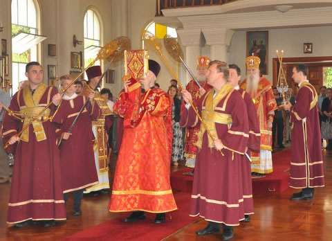Highslide JS2-3 января Высокопреосвященнейший Иларион, митрополит Восточно-Американский и Нью-Йоркский, Первоиерарх Русской Зарубежной Церкви, возглавил богослужения Недели перед Рождеством Христовым в Петропавловском кафедральном соборе в районе Стратфильда. Его Высокопреосвященству сослужили епископ Канберрский Георгий, викарий Австралийско-Новозеландской епархии; заведующий молодежным служением этой епархии протоиерей Георгий Лапардин, ключарь кафедрального собора, при протодиаконах Александре Котлярове и Константине Мошегове. В конце Божественной литургии Преосвященный Георгий сердечно приветствовал Первопастыря Русской Зарубежной Церкви и выразил радость состоявшимся торжественным сослужением.
