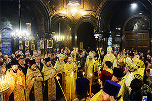 Святейший Патриарх Кирилл совершил Всенощное бдение в Крестовоздвиженском кафедральном соборе Западно-Европейской епархии