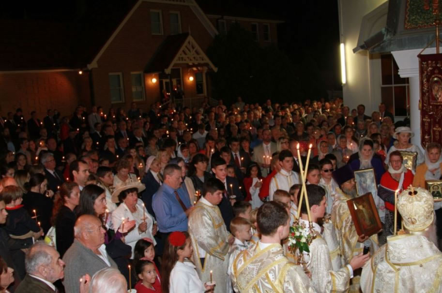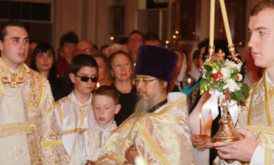 Ночь на Пасху в этом году выдалась в Сиднее особенно теплая и тихая. В 11 вечера термометр еще показывал 22 градуса. Кажется природа радуется вместе с тысячей православных людей, собравшихся в Петропавловском соборе и возле него в эту Пасхальную ночь на праздничную службу. Возглавил её епископ Канберрский Георгий, ему сослужили ключарь собора, протоиерей Георгий Лапардин и протодиакон Александр Котляров.