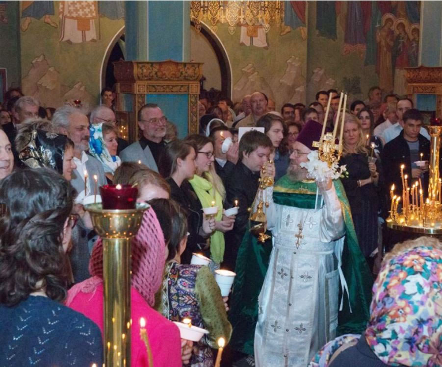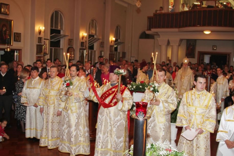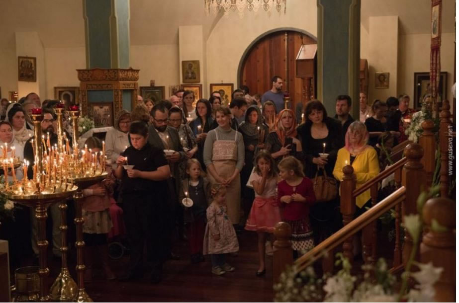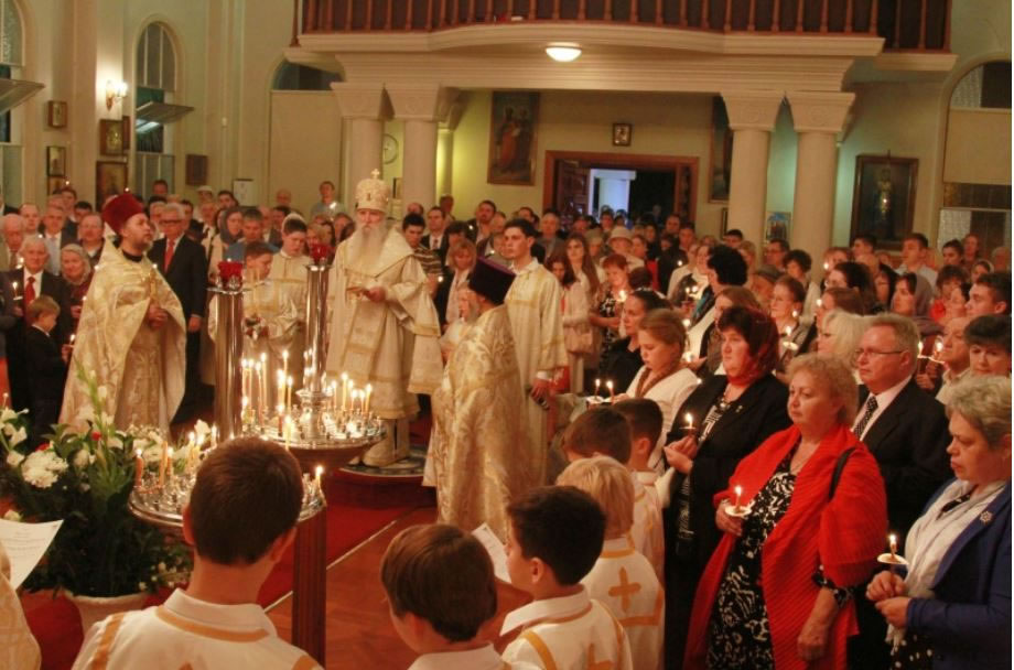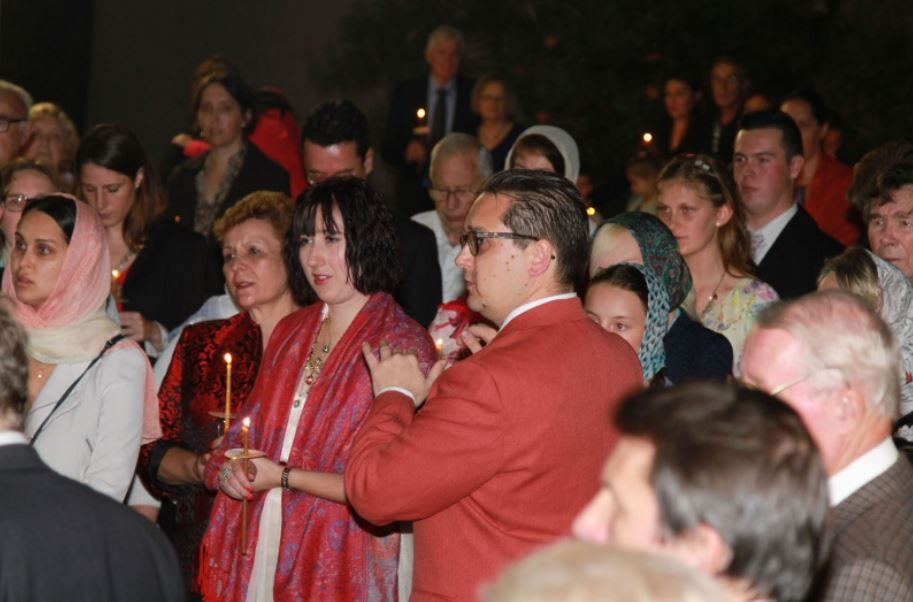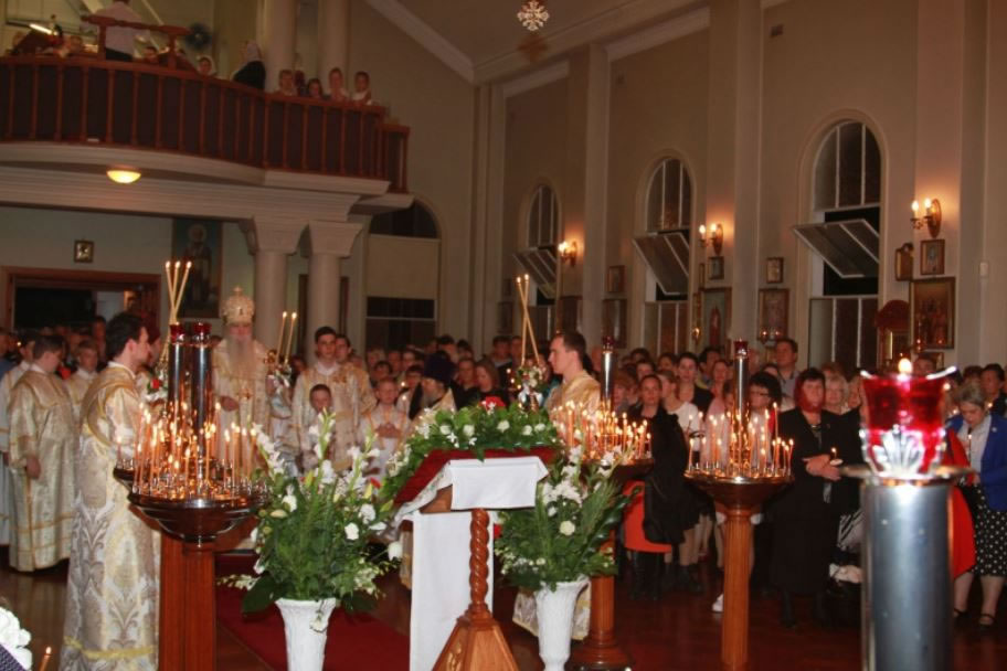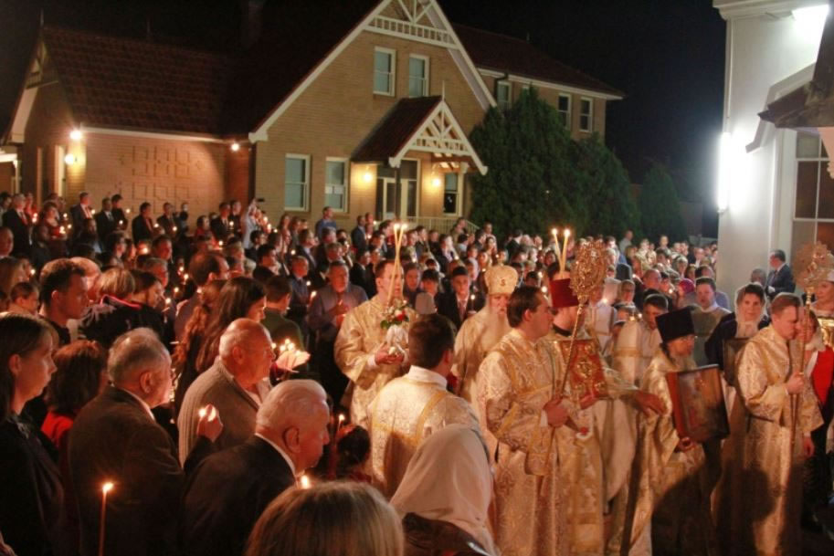 В самый главный праздник верующие целыми семьями приходят на праздничную службу в церковь. Полунощная служба началась около 12 ночи, но люди пришли пораньше. Так как с 8 часов шли чтения «Деяния Святых Апостолов», когда любой человек может подойти и прочитать главу на том языке, который является для него родным. В то же время настоятель Покровского собора в Мельбурне протоиерей Николай (Карыпов) проводил освящение пасхальных яств.