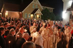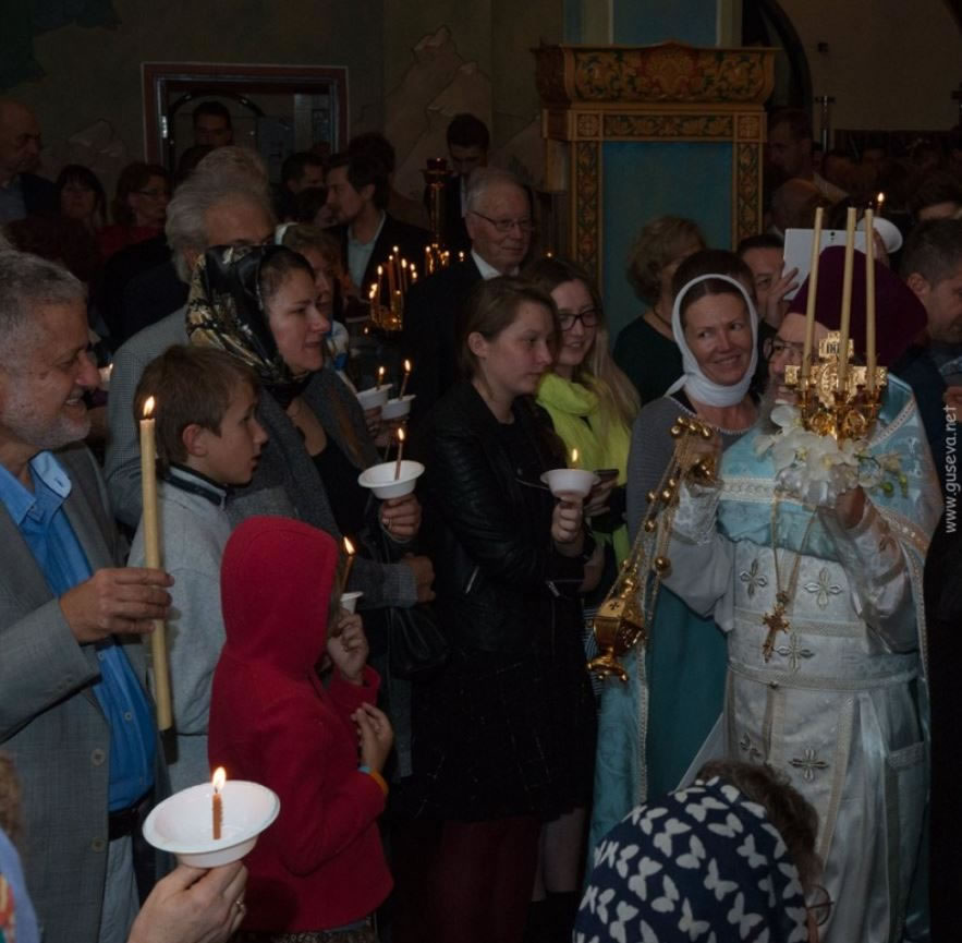 Я впервые присутствовала в Мельбурне на праздничной пасхальной службе, и помимо того, что было приятно встретить многих друзей и знакомых, я почувствовала, насколько радостный этот праздник. Вся служба проходила в песне. Пели священники и им вторил хор. Несмотря на большое количество людей, не было никакого дискомфорта. И действительно было радостно первым услышать благую весть. Мельбурн от себя подарил прекрасную теплую ночь, которая была, такой до окончания службы и только потом загремел гром, засверкали молнии, и полил дождь.