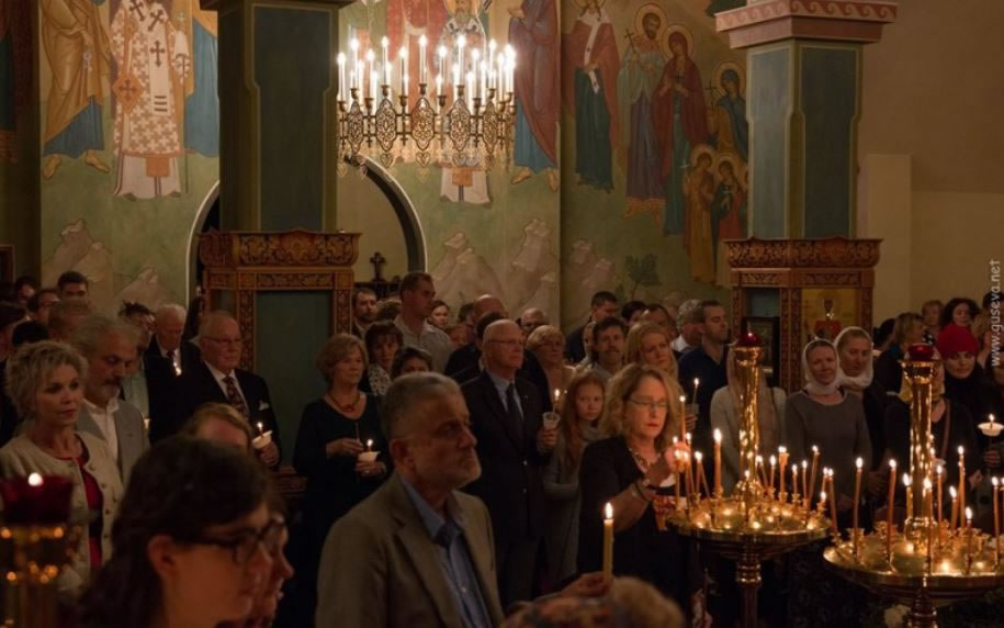 Удивительное чувство сплоченности и единства возникает у всех, пришедших на службу в эту ночь. Люди готовились к этому дню, большинство надели свои праздничные одежды, многие пришли с детьми и внуками. После 11 часов все уже приготовили свечи. Когда часовая стрелка подходит к 12-ти, из храма передают огонь и все зажигают свечи друг у друга. Выходящих из собора священников в светлых ризах и прихожан с иконами и хоругвями встречает уже море огней. Перед самым полночью громко звенит колокол, разносит радостную весть о Воскресении Христа по всем окрестным улицам. В полночь, во время крестного хода вокруг собора священники радостно возглашают «Христос Воскресе» и тысяча голосов дружно отвечает им «Воистину Воскресе». Начинается пасхальная утреня, особенно радостная и веселая служба. Прекрасно, величественно поет хор собора под руководством регента Андрея Лаптева. Во втором часу часть молящихся начинают расходится, впереди их ждет разговление яйцами и куличами, которые они освятили чуть раньше. Но большинство молящихся остаются в соборе, утренняя служба продолжается еще час. Выходя из храма и встречая знакомых, все целуются трижды. Я встретил в этот вечер множество знакомых, и не только из Сиднея. Приехали люди из Вуллонгонга, были и гости из Брисбена. «Как можно пропустить Пасхальную утреню, — сказала мне одна знакомая прихожанка, — она наполняет тебя радостью на несколько недель».