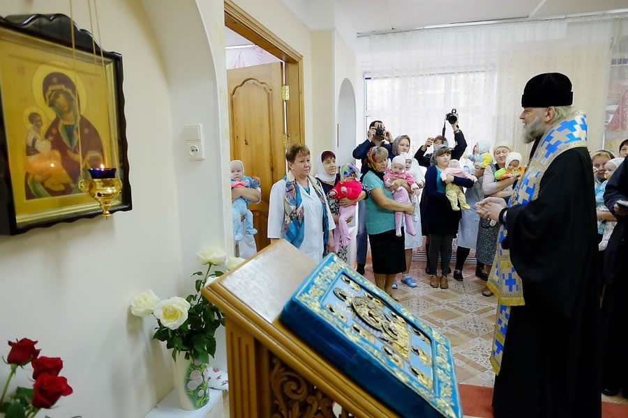 Впервые чудотворная икона была принесена в Областной специализированный Дом ребенка. У входа в лечебное учреждение митрополита Курского и Рыльского Германа со святыней встречала по русскому обычаю с хлебом солью главный врач Лариса Анатольевна Трутаева. Владыка Герман в сослужении духовенства, сопровождающего икону, и архиерейского квартета совершил молебен, а сотрудники Дома ребенка с детками на руках приложились к иконе. Детки, несмотря на непривычную обстановку, почти не плакали, а взрослые незримо ощущали присутствие Царицы Небесной и молились о здравии малышей и их дальнейшем благополучии.