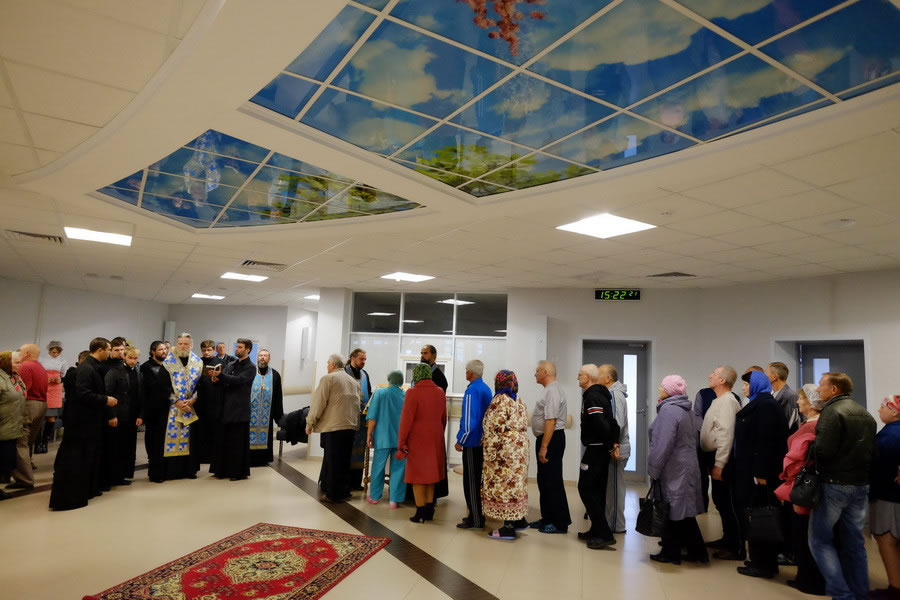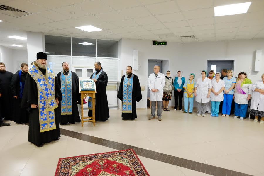 Завершилось посещение лечебных учреждений в новом онкологическом центре. Глава митрополии сердечно приветствовал главного врача Игоря Леонидовича Кисилева и всех встречающих икону. В холле нового центра перед чудотворным образом соборно молились и пациенты, и сотрудники о Божией помощи в борьбе со страшным недугом. Они сердечно благодарили владыку Германа и духовенство за доставленную им великую радость.