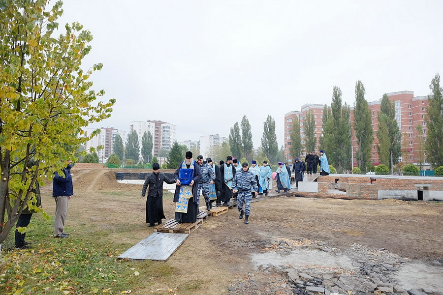 По дороге в Областную детскую клиническую больницу №2 архипастырь заехал и осенил чудотворным образом фундамент строящегося храма святых мучениц Веры, Надежды, Любови и матери их Софии в г. Курске.