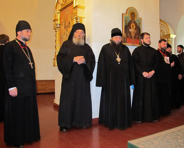 В тот же день Преосвященный Николай посетил Рождества-Богородичный Санаксарский мужской монастырь . Его Преосвященство посетил соборный храм, где приложился к святым мощам Санаксарских святых, и монастырскую трапезную, после которой ему была рассказана краткая история обители.