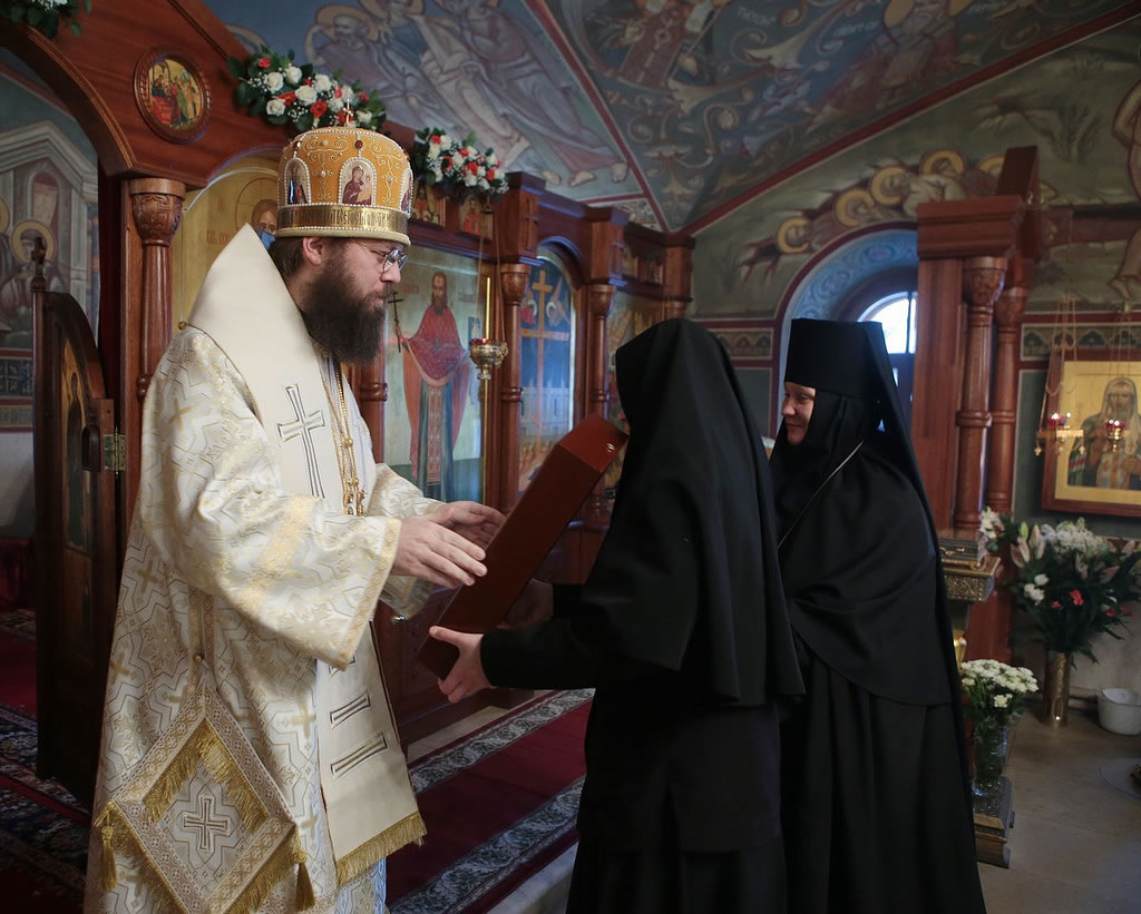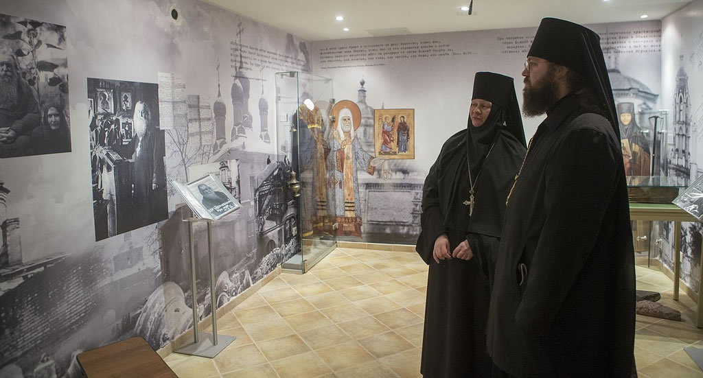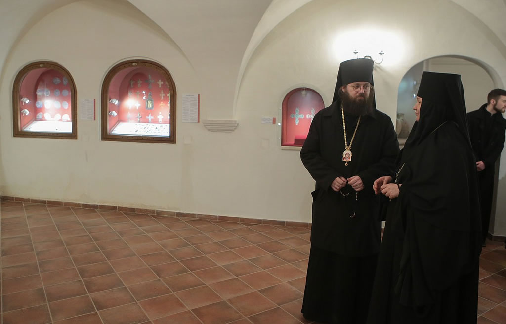 После службы матушка игумения предложила Владыке небольшую экскурсию по храмам и музею истории монастыря, а затем была устроена общая поминальная трапеза.