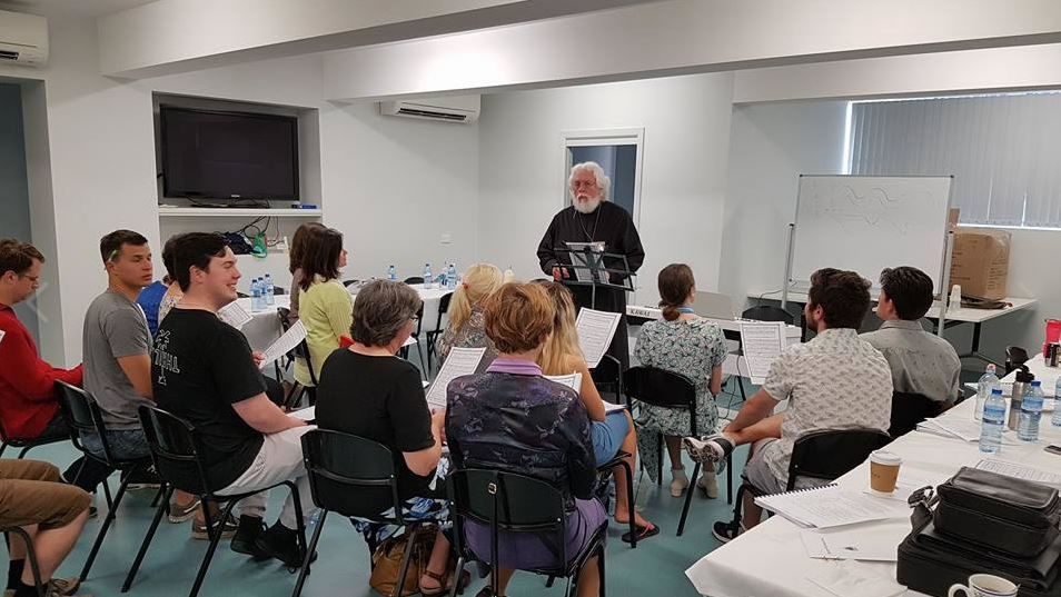 Большой двухчасовой урок по основам чтения квадратной нотации дал отец Андрей. Целый пласт певческой культуры хранит в себе этот стиль письма, который в современном обиходе почти исчез из употребления. Наталья Станько из Аделаиды, профессиональный теоретик и преподаватель, помогла начинающим в музыке разобраться в многообразии терминологии и различиях между названиями по американской и британской системной классификации.