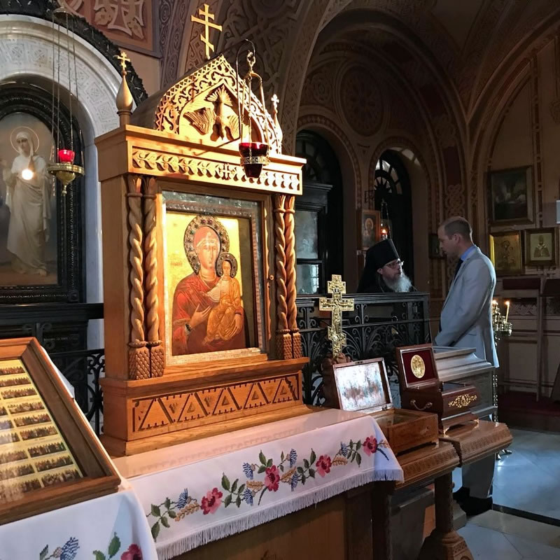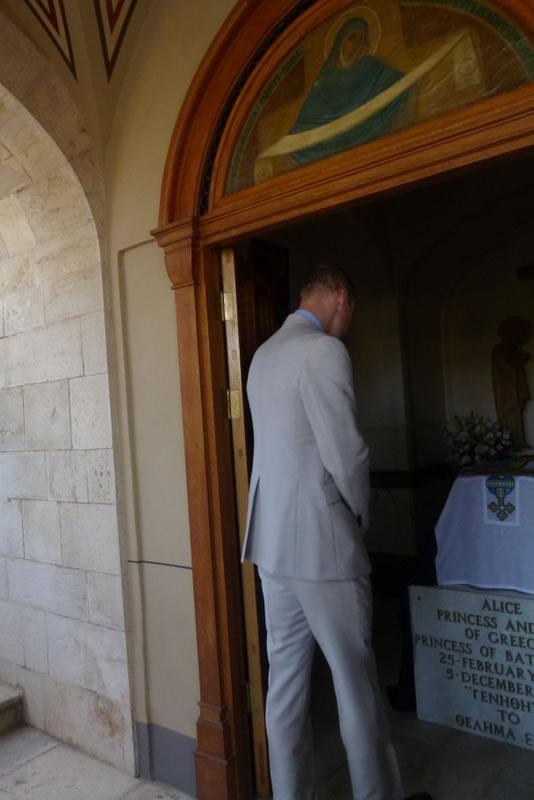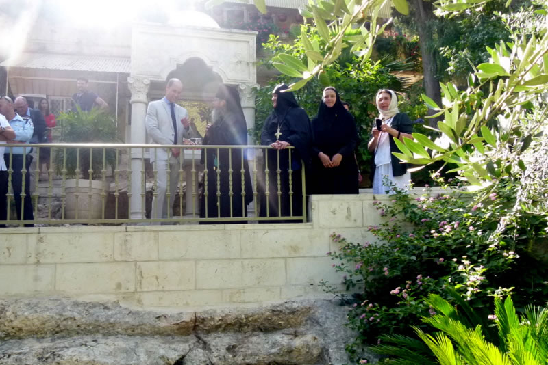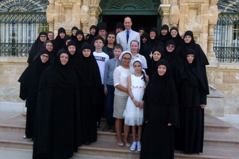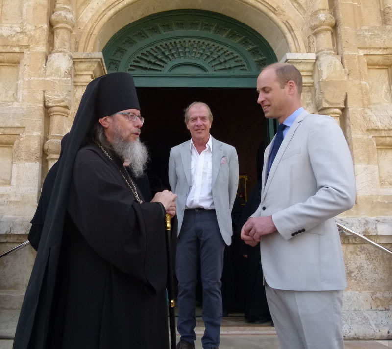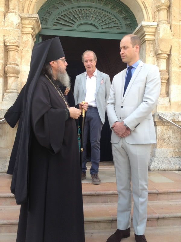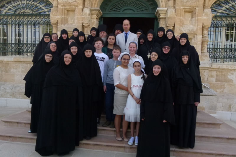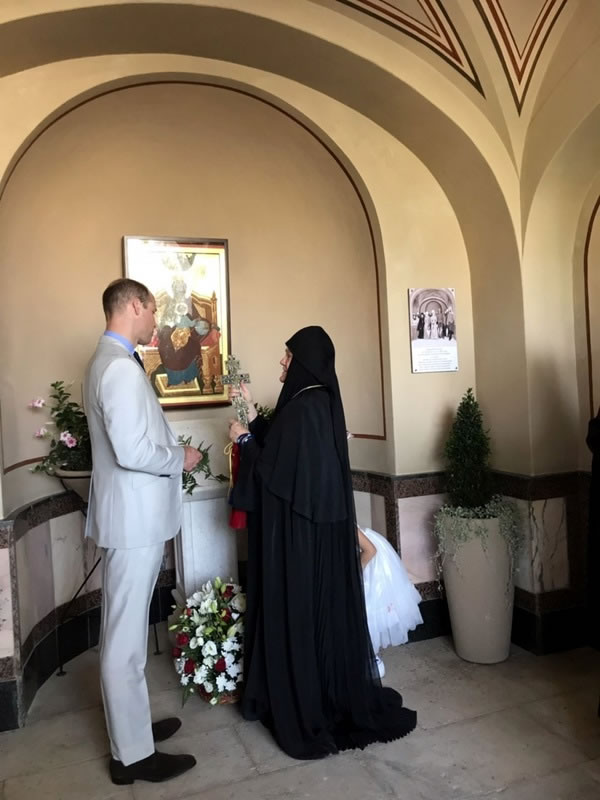 В четверг, 28 июня, Британский принц Уильям посетил русский женский монастырь равноапостольной Марии Магдалины в Гефсимании, где был встречен архимандритом Романом (Красовским), Начальником Духовной Миссии Русской Зарубежной Церкви в Иерусалиме, и настоятельницей обители игуменией Елизаветой с сестрами. Проследовав в соборный «Царский» храм обители, принц Уильям поклонился священной раке с мощами преподобномученицы великой княгини Елизаветы, мученически убиенной 100 лет тому назад в Алапаевске и нашедшей здесь место упокоения. Архимандрит Роман совершил краткий молебен у святыни, совершив поминовение Государыни Королевы Елизаветы и всего Королевского Дома. Молебен завершился многолетствием Государыне Королеве Елизавете, принцу Уильяму и всему Королевскому Дому.