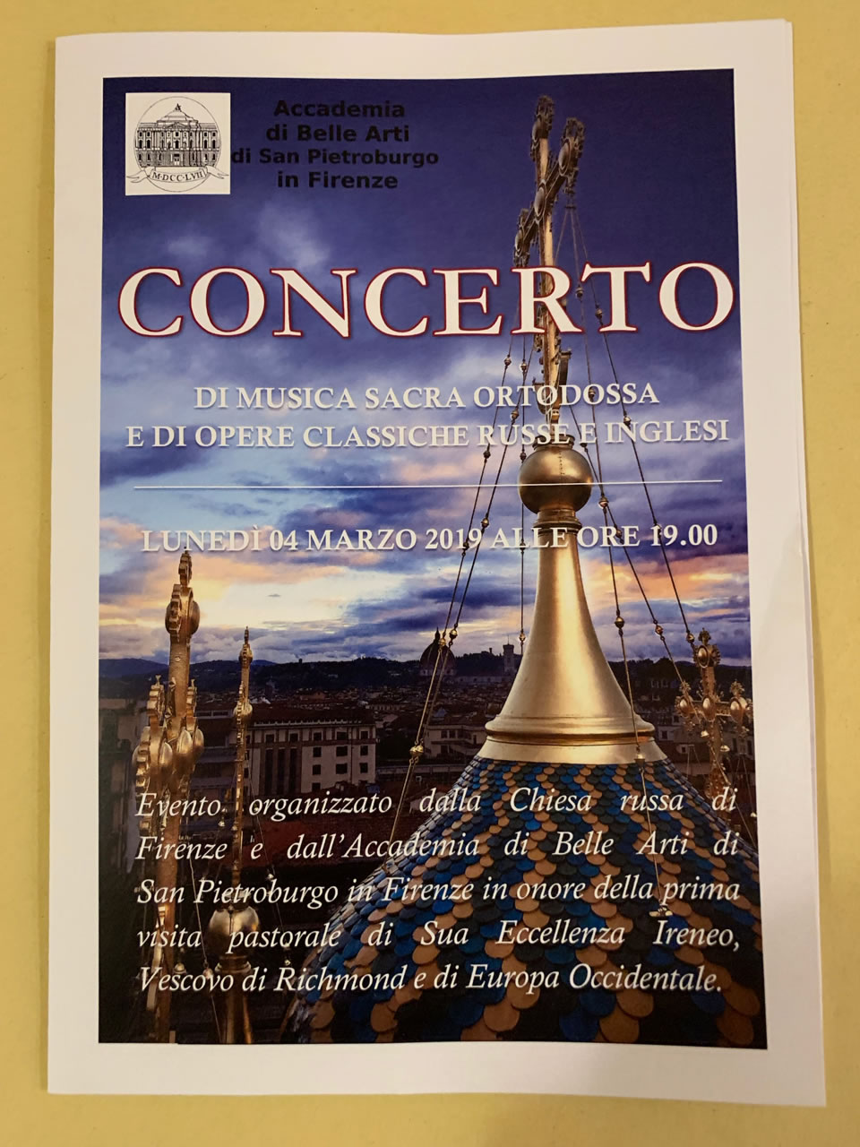 Во вторник, 5 марта, владыка Ириней отправился из Флоренции в Сан-Ремо, чтобы в первый раз посетить город в качестве правящего архиерея.
