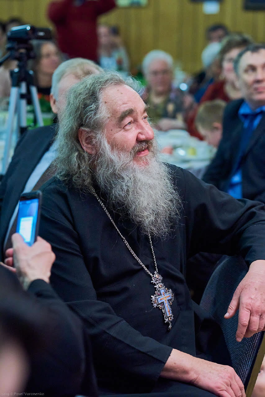 После литургии все желающие спустились в обширный зал на блины, во время которых учащиеся приходской школы предложили прихожанам и гостям художественную программу. С речами выступили прот. Владимир Мальченко, почетный гость праздника, Генконсул Российской Федерации в г. Торонто – Кирилл Сергеевич Михайлов, председатель Русского дома в Торонто Ольга Геннадьевна Гребенчук и прот. Петр Перекрестов. После блинов и перерыва отец Петр провел встречу с прихожанами, рассказав им о новых малоизвестных сведениях из жизни св. Иоанна. Два отрывка из последней книги о. Петра о св. Иоанне,«Пастырь. Учитель. Друг», были прочитаныТатьяной Давидовной Суходольской, а в заключение встречи была показана редкая кинохроника св. Иоанна и службы его прославления.