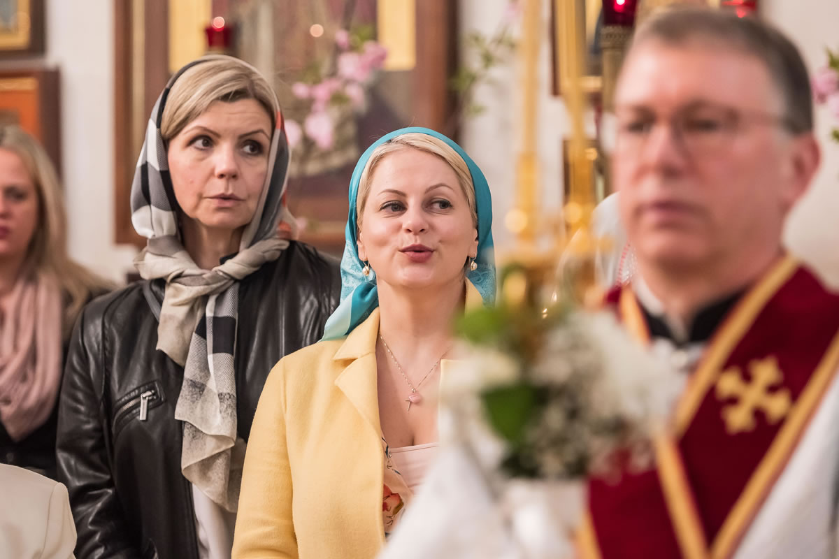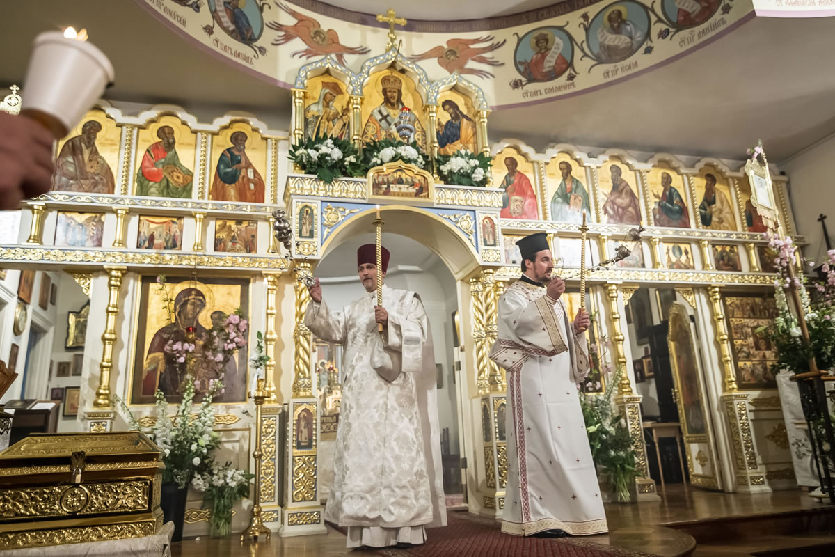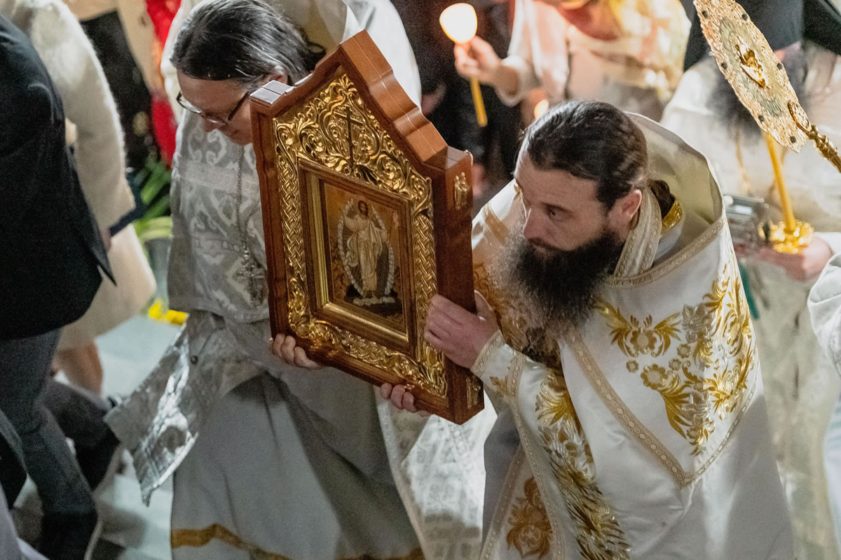 По окончании светлой Пасхальной Утрени епископ Николай совершил ночную Божественную литургию, а епископ Ириней – позднюю Литургию, за которой молились православные собратья-сербы. После обеих Литургий продолжилось общение архипастырей, духовенства и всех верующих за трапезой.