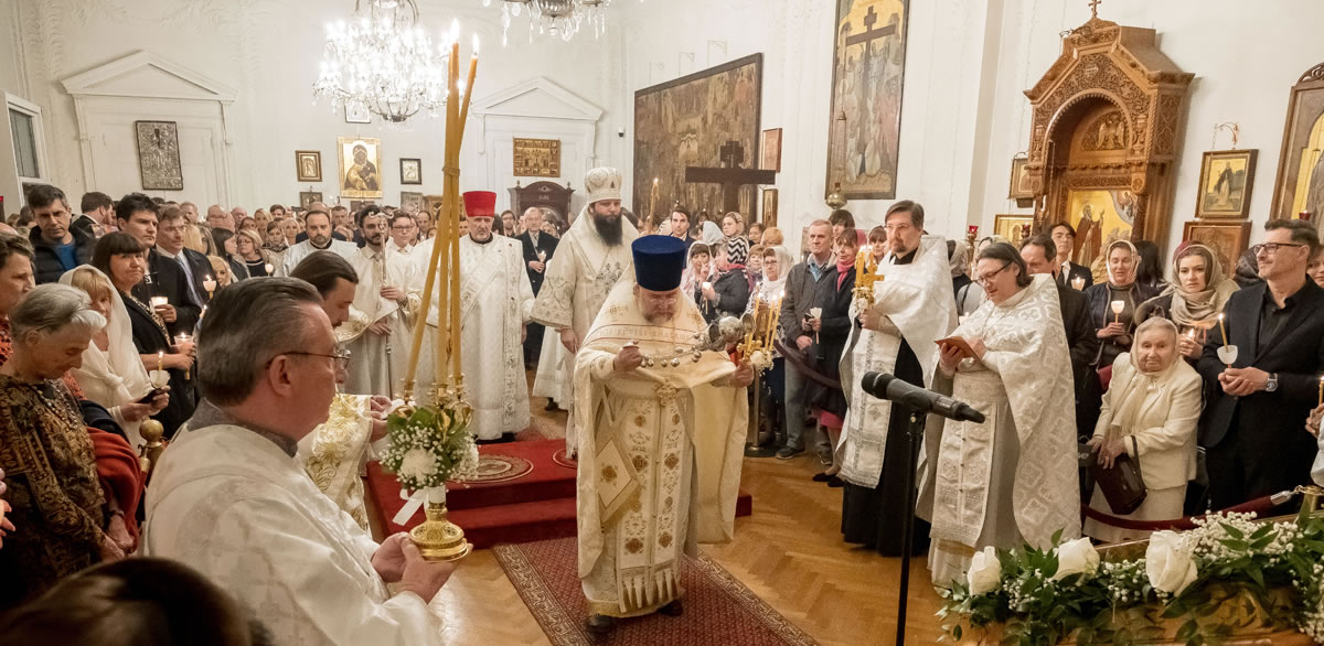 Торжественно, многолюдно и с большим духовным подъемом прошли Пасхальные богослужения в Знаменском соборе г. Нью-Йорка, где их возглавил епископ Манхэттенский Николай, заместитель Секретаря Архиерейского Синода. Его Преосвященству сослужили епископ Восточно-Американский Ириней (Сербская Православная Церковь), соборный клир и духовенство кафедрального собора святителя Саввы Сербского. Вместе с собравшимися многочисленными прихожанами и богомольцами Знаменского собора молились и члены общины кафедрального собора святителя Саввы, постепенно восстанавливающие свой храм на Манхэттене, пострадавший после пожара несколько лет тому назад.