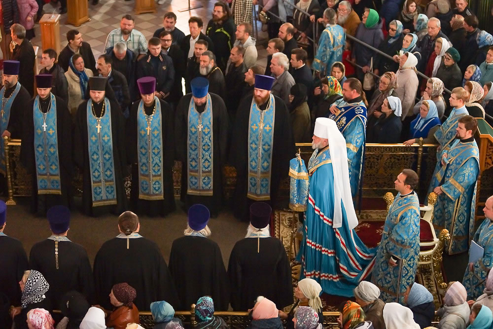 В дни пребывания иконы в Курске для всех верующих Знаменский собор был открыт круглосуточно. Перед святым образом Царицы Небесной духовенство непрерывно совершало молебны с чтением акафиста Пресвятой Богородице.