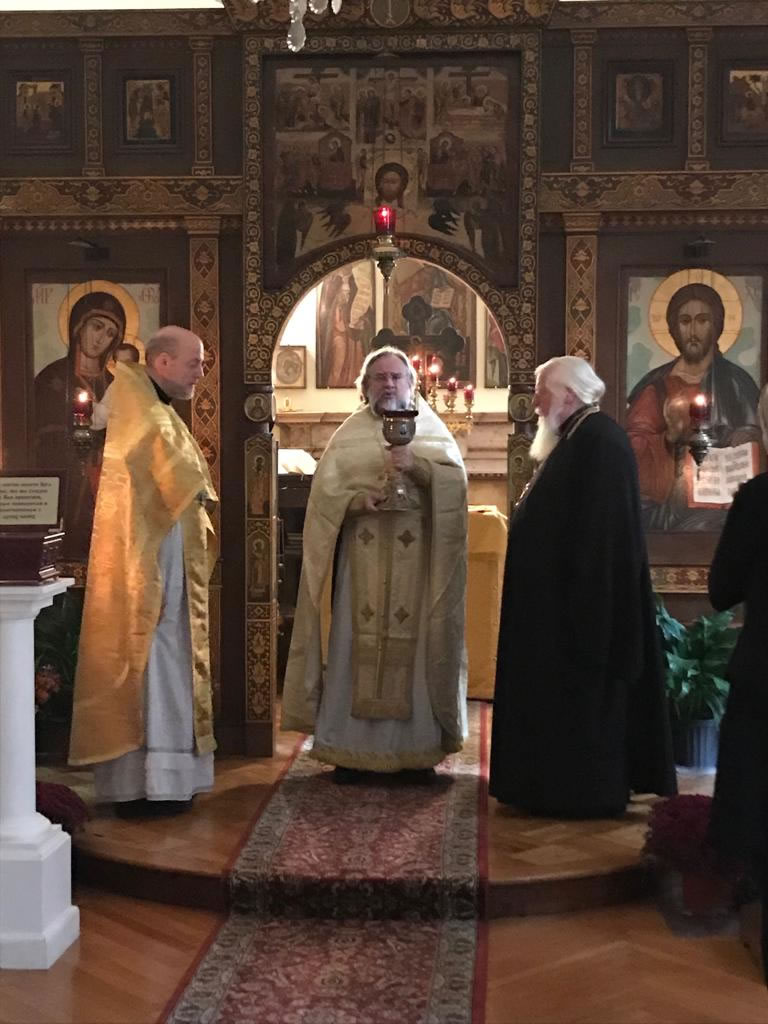 В среду, 16 октября, в день своего рукоположения во иереи, совершенного епископом Бостонским Митрофаном (Зноско-Боровским) 25 лет тому назад, ключарь собора совершил Божественную литургию в Сергиево-Радонежской церкви Синодальной резиденции. По окончании богослужения Преосвященный епископ Николай совершил благодарственный молебен перед Курско-Коренной иконой Божией Матери, поздравил отца Андрея и провозгласил ему многолетие.