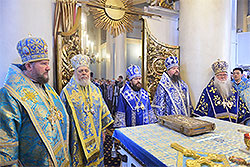 Также приветствую представителей Грузинской Православной Церкви, Православной Церкви Чешских земель и Словакии, Православной Церкви в Америке, представителя Московского Патриархата при Болгарском Патриаршем престоле, всех наших дорогих братьев и сестер, которые сегодня приняли участие в праздничном богослужении.