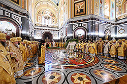 Богослужебные песнопения исполнили Патриарший хор Храма Христа Спасителя (регент И.Б. Толкачев) и хор Сретенского ставропигиального монастыря (регент Н.С. Жила).