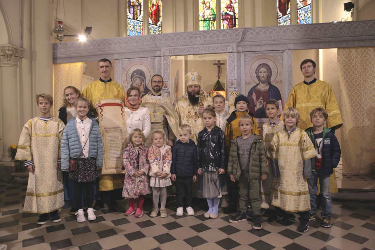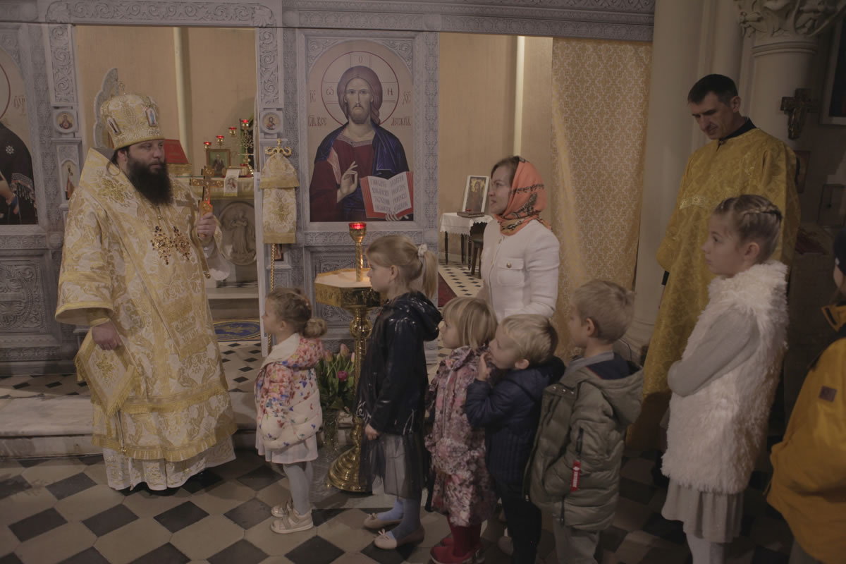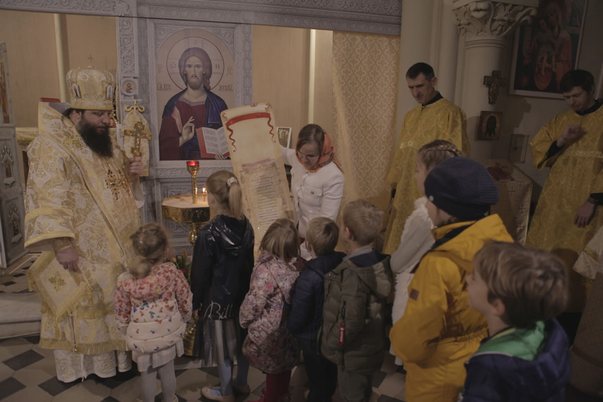 В воскресенье была отслужена вторая архиерейская Литургия, в конце которой маленькие ученики воскресной школы вручили владыке собственноручно сделанный особый подарок на молитвенную память.